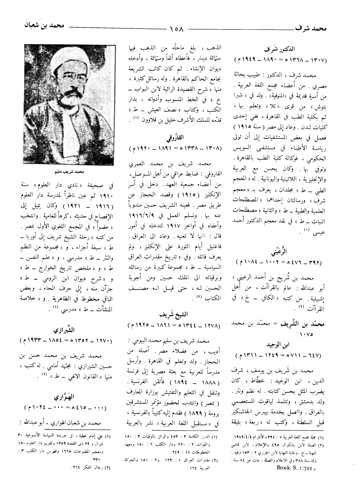 محمد شرف، الدكتور: طبيب بحاثة مصري. من أعضاء مجمع اللغة العربية. من أسرة قديمة في (المنوفية) . ولد في (شبرا بتوش) من قرى (تلا) وتعلم بها، ثم بكلية الطب في القاهرة، ففي إحدى كليات لندن. وعاد إلى مصر (سنة 1915) فعمل في بعض المستشفيات إلى أن تولى رياسة الأطباء في مستشفى السويس الحكومي، فوكالة كلية الطب بالقاهرة. وتوفي بها. وكان يحسن مع العربية والإنجليزية، اللاتينية واليونانية. له (المعجم الطبي - ط) مجلدان، يعرف ب (معجم شرف) ورسالتان إحداهما (المصطلحات العلمية والطبية - ط) والثانية (مصطلحات النبات - ط) في نقد معجم الدُّكْتُور أَحمد عِيسى (1) .