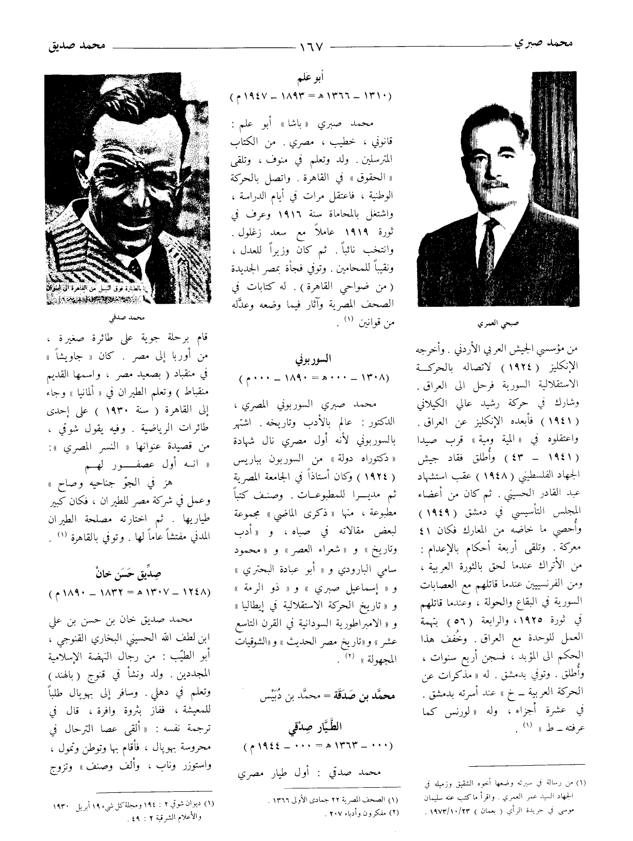 محمد صبري (باشا) أبو علم: قانوني، خطيب، مصري. من الكتاب المترسلين. ولد وتعلم في منوف، وتلقى (الحقوق) في القاهرة. واتصل بالحركة الوطنية، فاعتقل مرات في أيام الدراسة، واشتغل بالمحاماة سنة 1916 وعرف في ثورة 1919 عاملا مع سعد زغلول. وانتخب نائبا.
