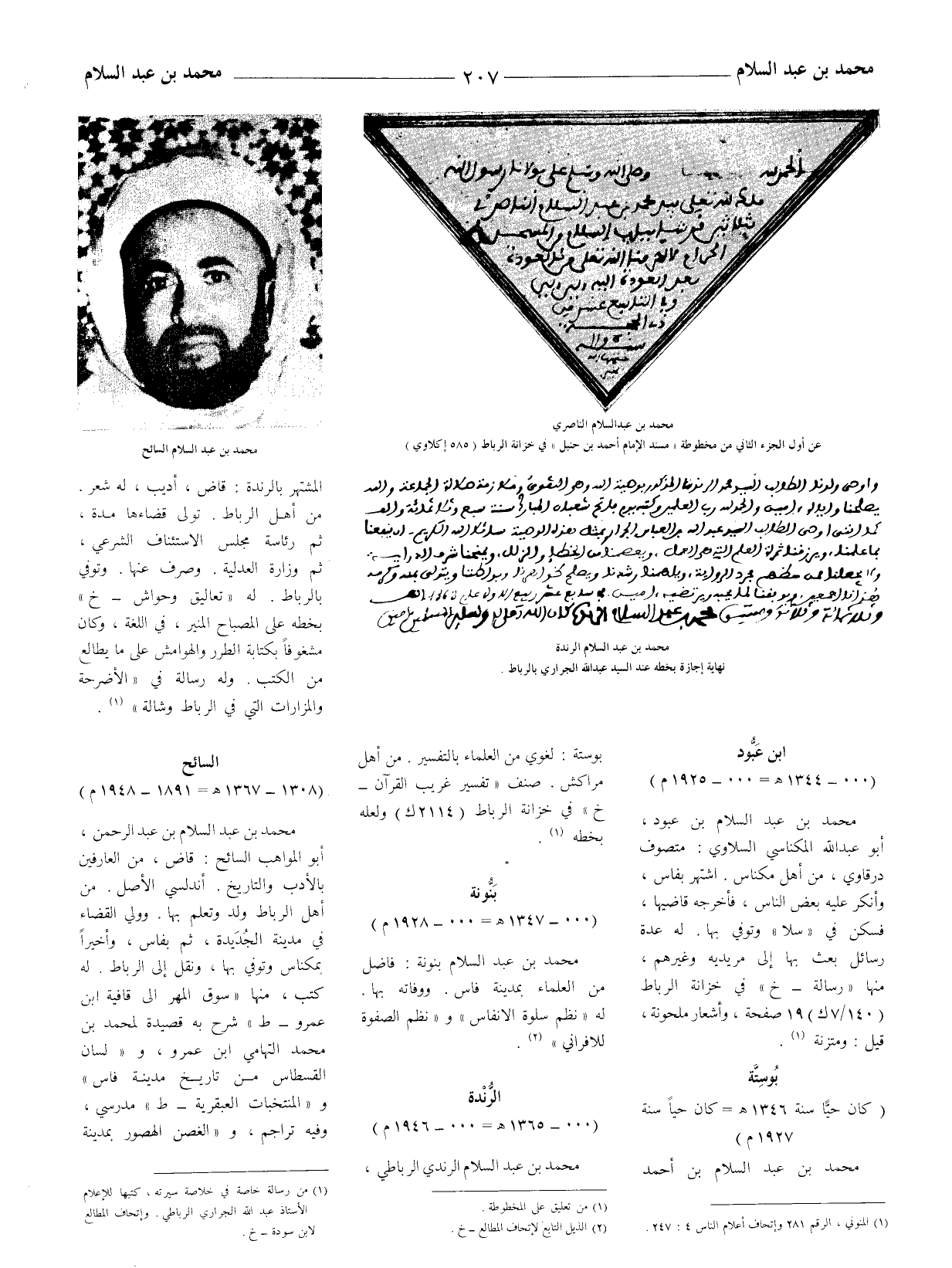(1) المنوني، الرقم 281 وإتحاف أعلام الناس 4: 247.