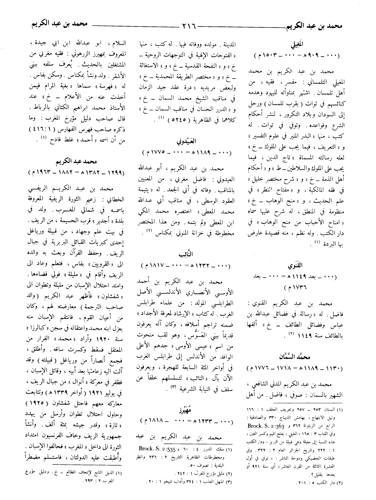(1) سلك الدرر 4: 60 و Brock S 2: 535.ومخطوطات الظاهرية التاريخ 2: 236 وانظر البلدية: تصوف 50.