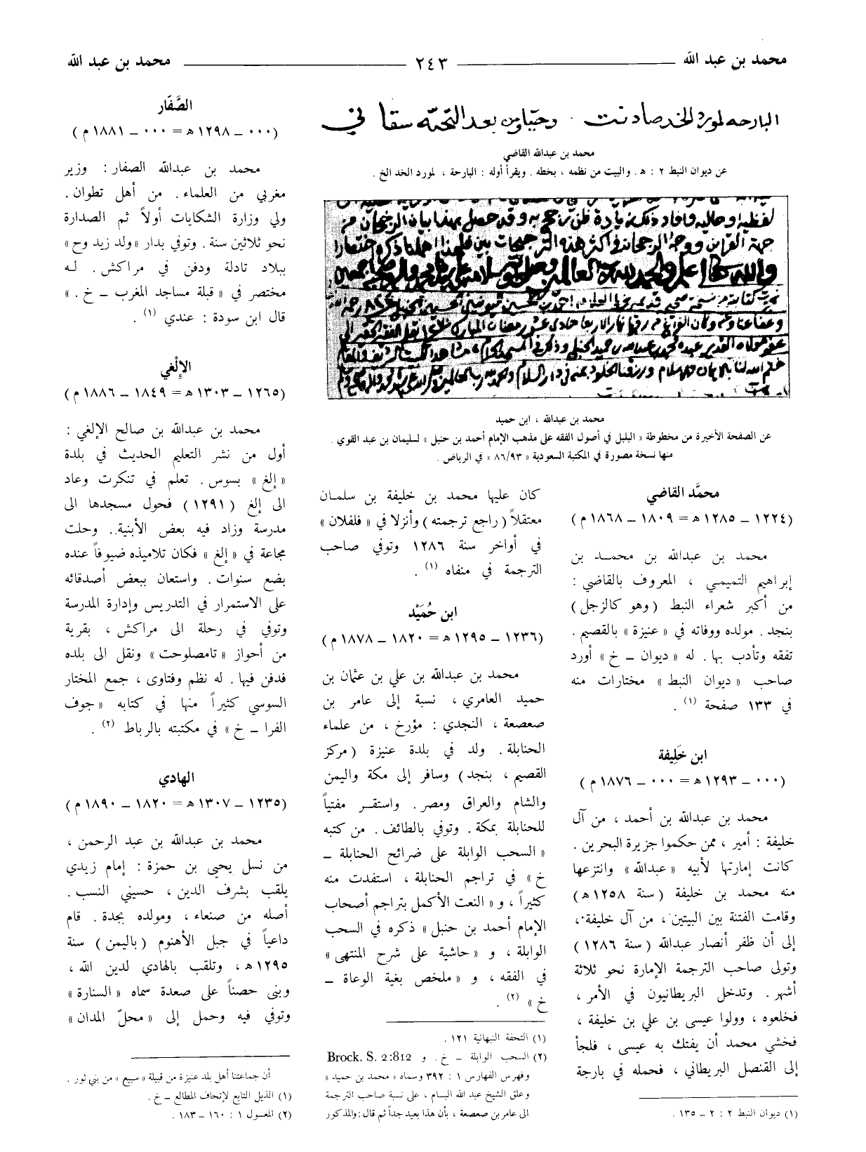 (2) السحب الوابلة - خ وBrock S 2: 812. وفهرس الفهارس 1: 392 وسماه (محمد بن حميد) وعلق الشيخ عبد الله البسام، على نسبة صاحب الترجمة إلى عامر بن صعصعة، بأن هذا بعيد جدا ثم قال: والمذكور