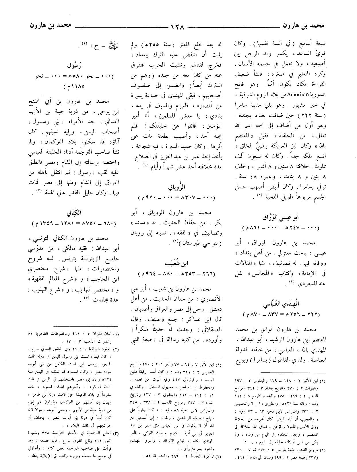 محمد بن هارون الوراق، أبو عيسى: باحث معتزلي. من أهل بغداد، ووفاته فيها.