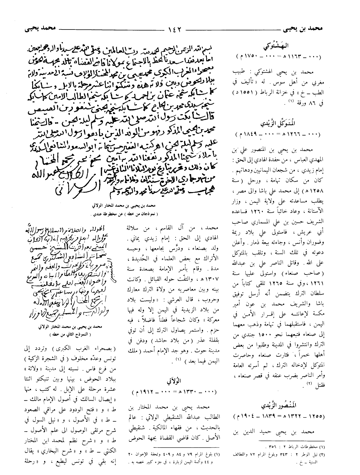 (1) بلوغ المرام 79 و 84 و 409 وتحفة الإخوان 20 و 44 وأئمة اليمن لزبارة، في جزء كبير خصه به.