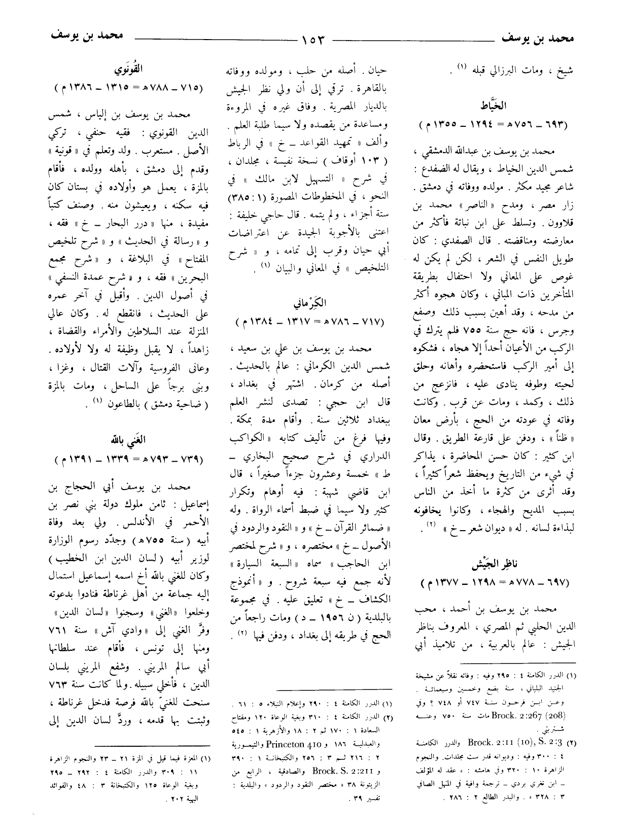 (1) الدرر الكامنة 4: 295 وفيه: وفاته نقلا عن مشيخة الجنيد البلياني، سنة بضع وخمسين وسبعمائة. وعن ابن فرحون سنة 747 أو 748؟ وفي Brock 2: 267 (208) مات سنة 750 وعنه شستربتي.