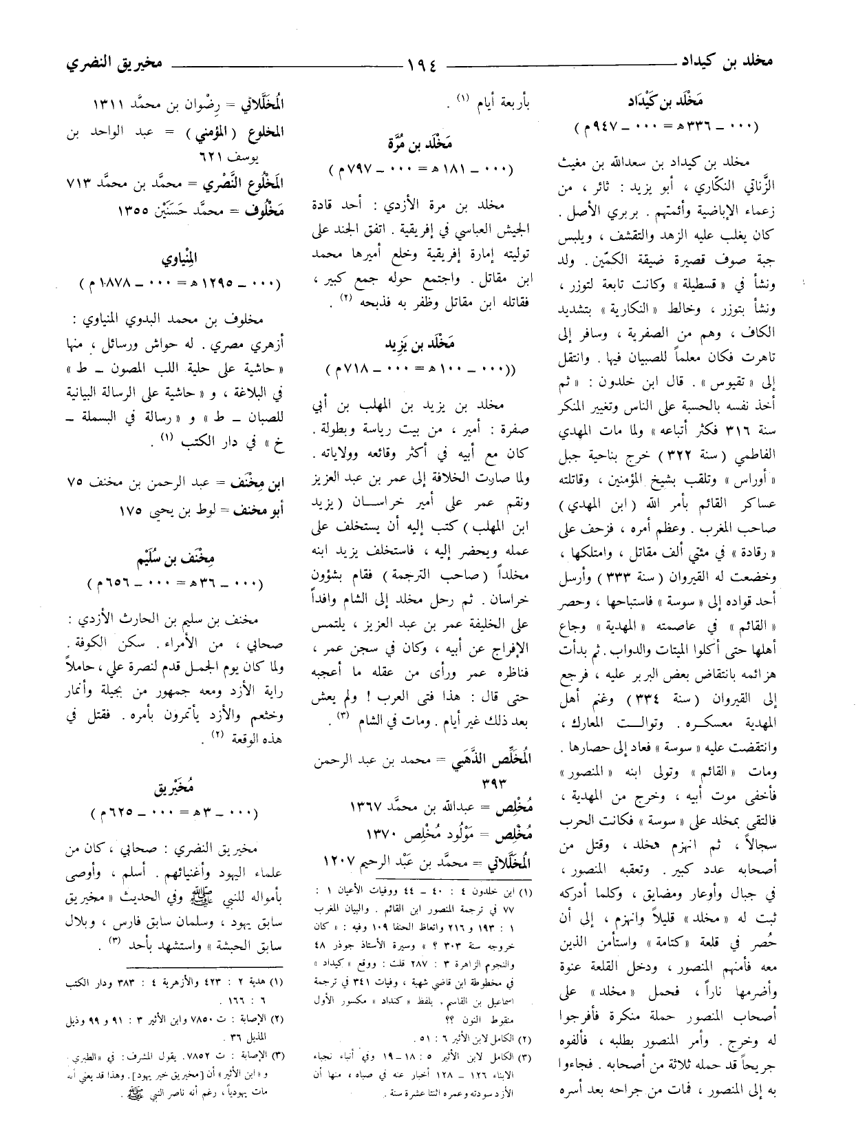(1) ابن خلدون 4: 40 - 44 ووفيات الأعيان 1: 77 في ترجمة المنصور ابن القائم.