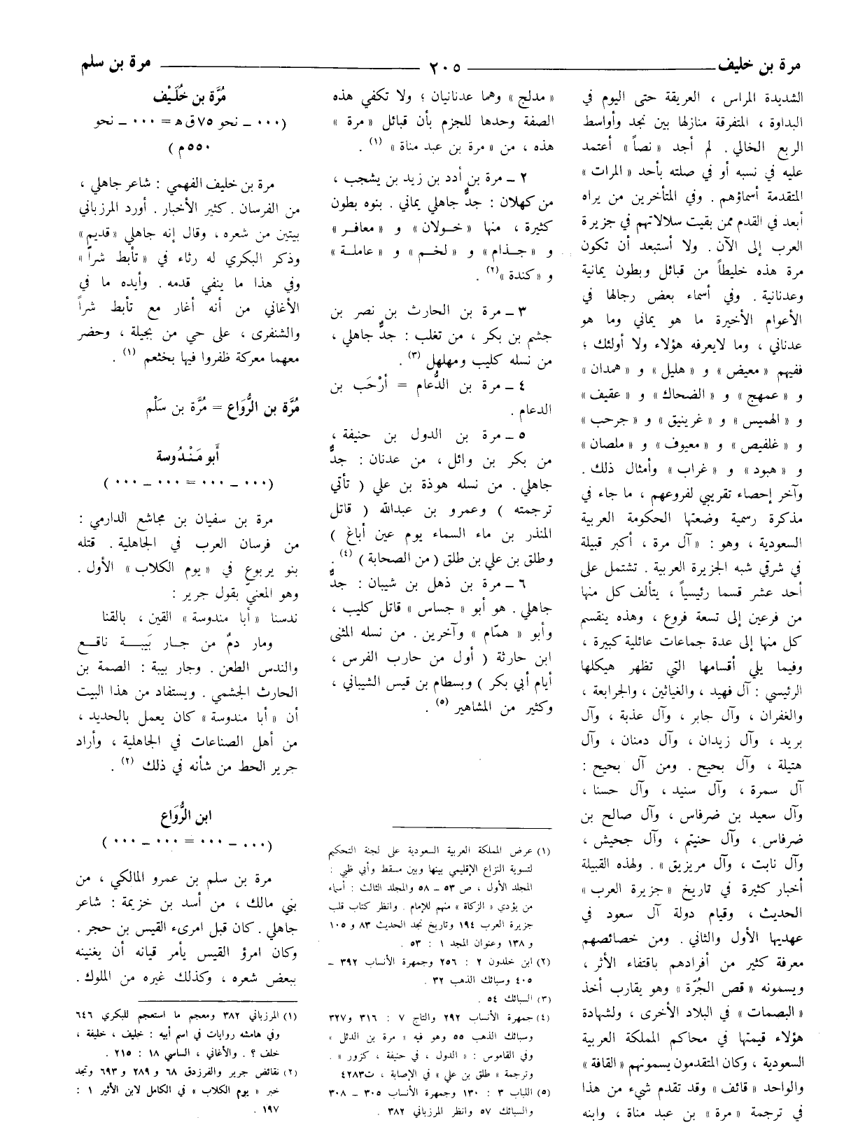 (5) اللباب 3: 130 وجمهرة الأنساب 305 - 308 والسبائك 57 وانظر المرزبانى 382.