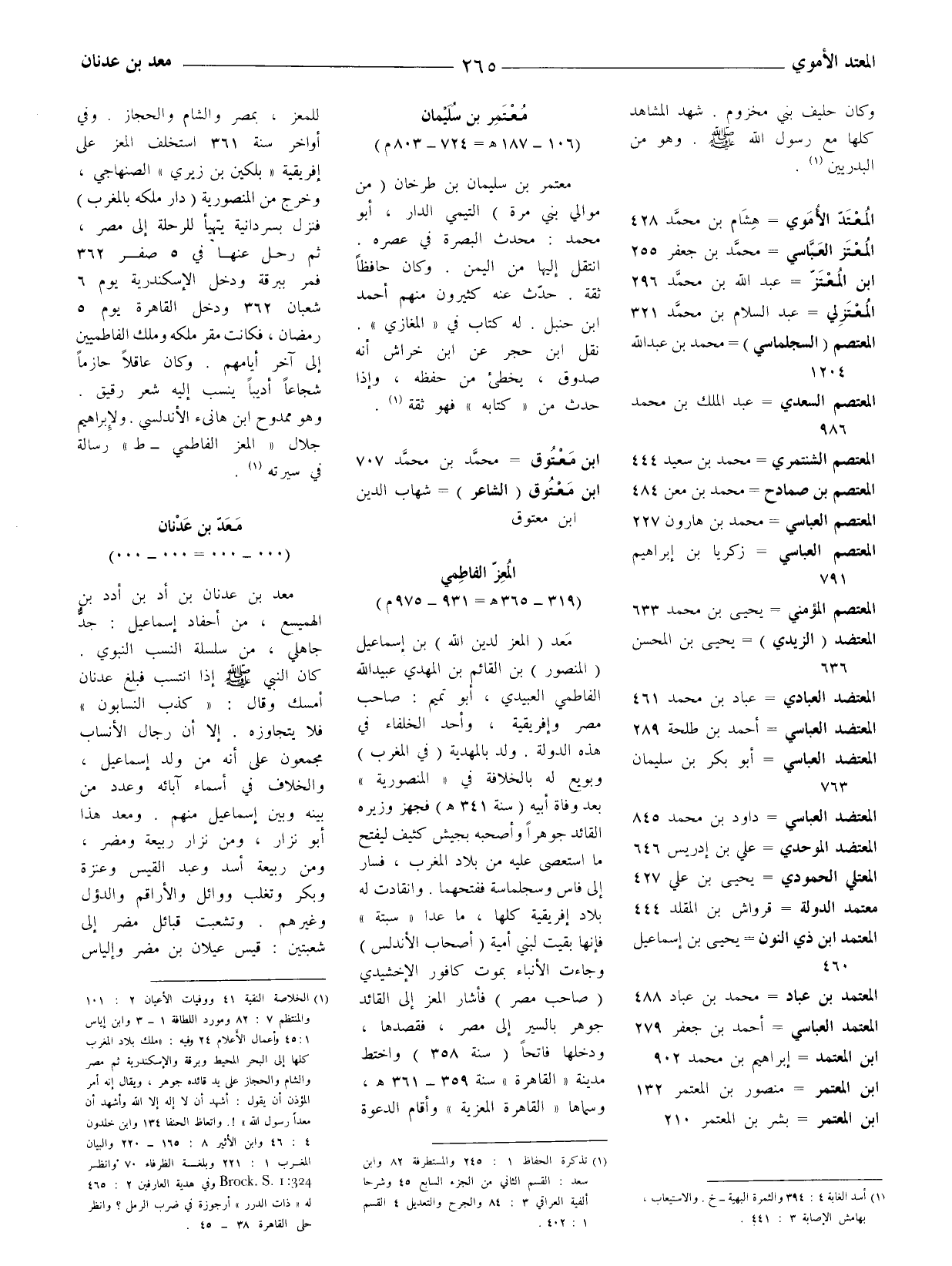 (1) الخلاصة النقية 41 ووفيات الأعيان 2: 101 والمنتظم 7: 82 ومورد اللطافة 1 - 3 وابن إياس 1: 45 وأعمال الأعلام 24 وفيه: (ملك بلاد المغرب كلها إلى البحر المحيط وبرقة والإسكندرية ثم مصر والشام والحجاز على يد قائده جوهر. ويقال إنه أمر المؤذن أن يقول: أشهد أن لا إله إلا الله وأشهد أن معدا رسول الله!. واتعاظ الحنفا 134 وابن خلدون 4: 46 وابن الأثير 8: 165 - 220 والبيان المغرب 1: 221 وبلغة الظرفاء 70 وانظر
