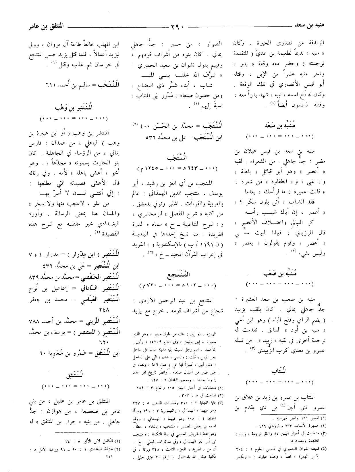 (3) غاية النهاية 2: 310 وشذرات الذهب 5: 227 وهو فيهما (الهمذاني) والتيمورية 3: 291 ومرآة الجنان 4: 108 وهو فيهما (الهمدانيّ) ووقع اسمه في بعض المصادر (المنتخب) بالخاء، خطأ. وهو بخط الشريف الحسيني في صلة التكملة: (منتجب ابن أَبي العِزّ الهمذاني) وفي مذكرات الميمني - خ. أن من (الفريد) الجزء الثالث، 348 ورقة، في مكتبة فيض الله باستنبول، الرقم 20 عتيق جليل.