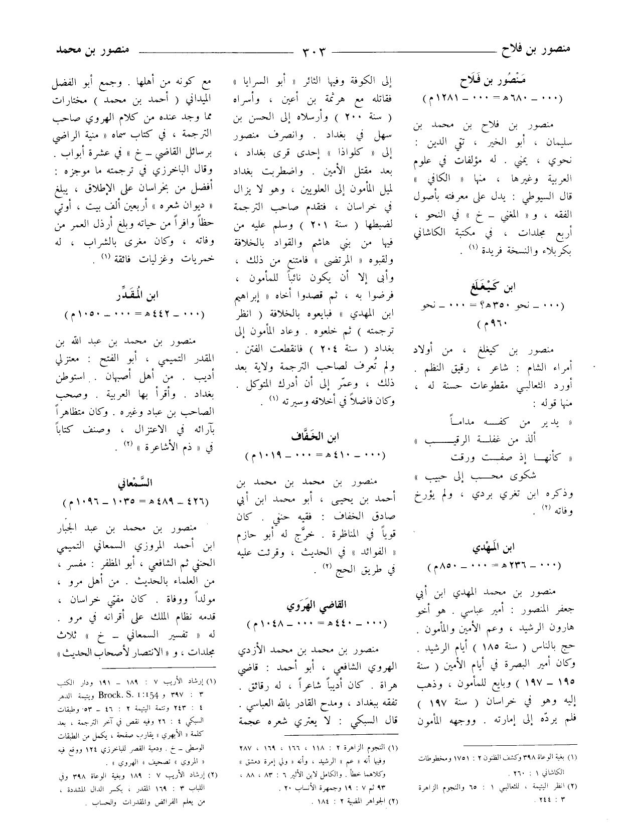 (1) إرشاد الأريب 7: 189 - 191 ودار الكتب 3: 397 و 154: 1Brock S.