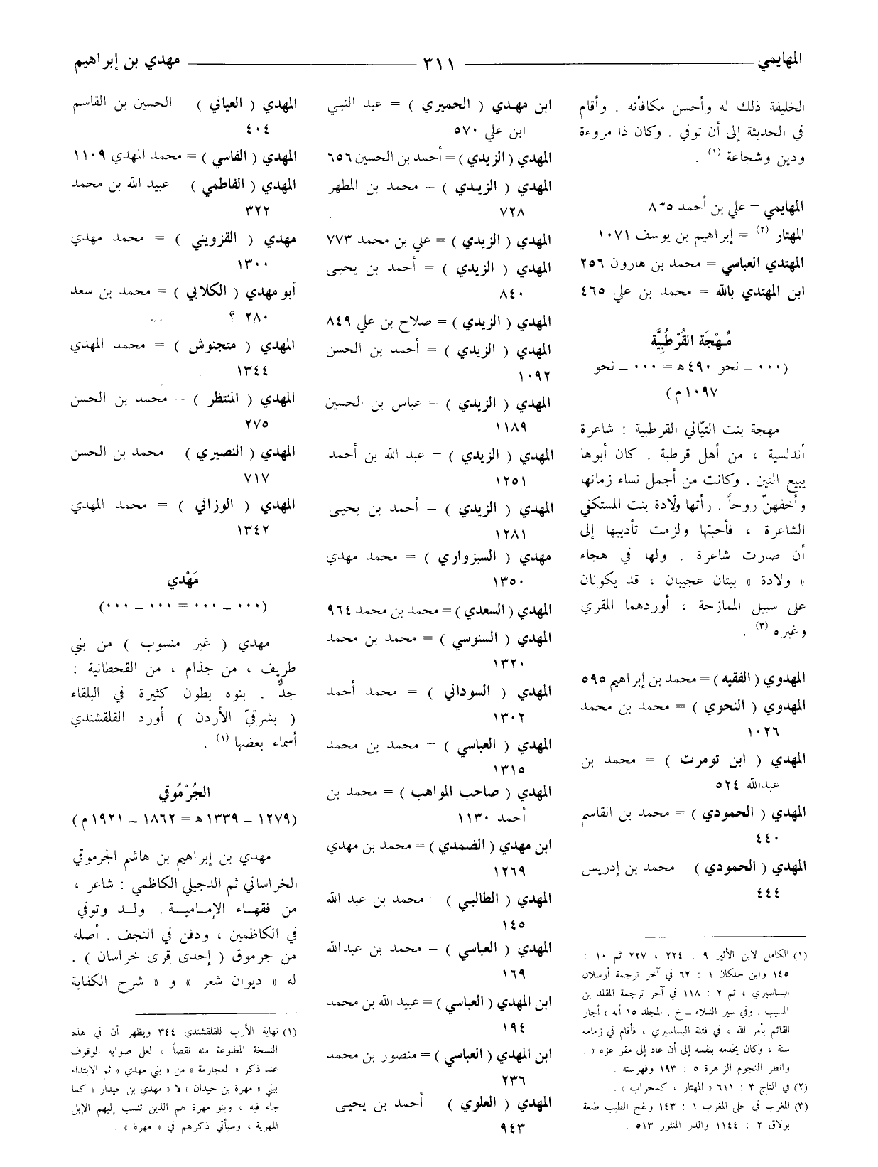 (1) الكامل لابن الأثير 9: 224، 227 ثم 10: 145 وابن خلكان 1: 62 في آخر ترجمة أرسلان البساسيري، ثم 2: 118 في آخر ترجمة المقلد بن المسيب. وفي سير النبلاء - خ.