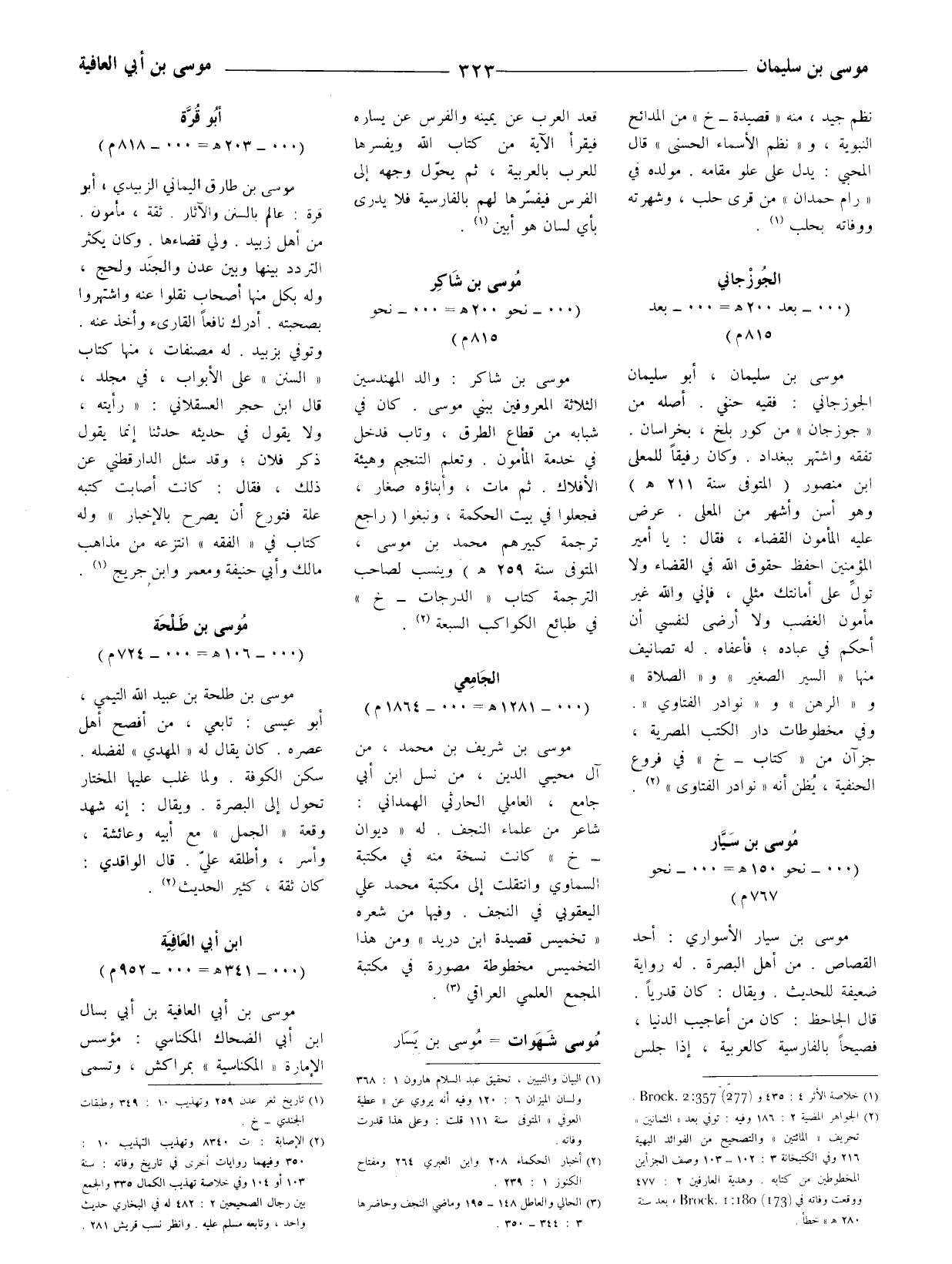 موسى بن شاكر: والد المهندسين الثلاثة المعروفين ببني موسى. كان في شبابه من قطاع الطرق، وتاب فدخل في خدمة المأمون. وتعلم التنجيم وهيئة الأفلاك. ثم مات، وأبناؤه صغار، فجعلوا في بيت الحكمة، ونبغوا (راجع ترجمة كبيرهم محمد بن موسى، المتوفى سنة 259 هـ وينسب لصاحب الترجمة كتاب (الدرجات - خ) في طبائع الكواكب السبعة (2) .