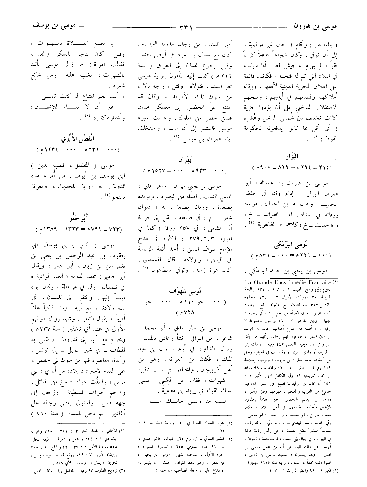موسى بن هارون بن عبد الله، أبو عمران البزار: إمام وقته في حفظ الحديث. ويقال له ابن الحمال. مولده ووفاته في بغداد. له (الفوائد - خ) و (حديث - خ) كلاهما في الظاهرية (2) .