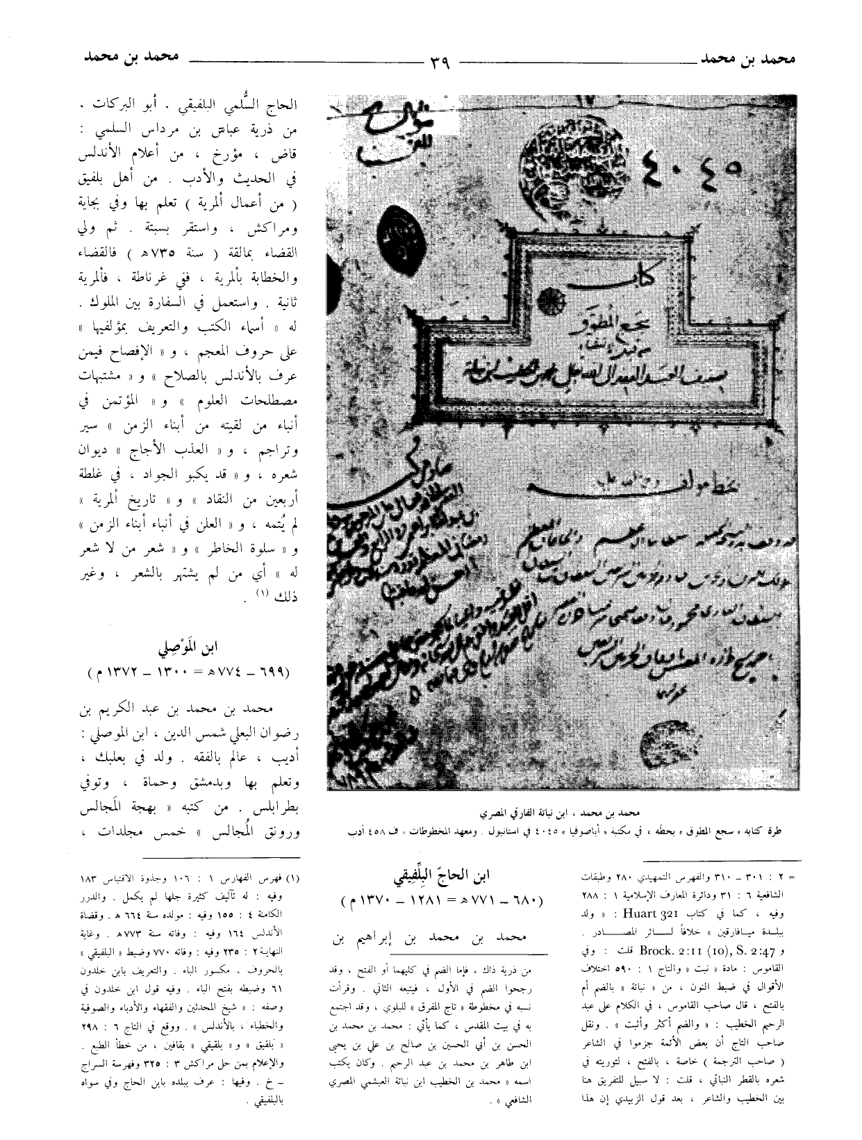 والدرر الكامنة 4: 155 وفيه: مولده سنة 664 هـ وقضاة الأندلس 164 وفيه: وفاته سنة 773 هـ وغاية النهاية 2: 235 وفيه: وفاته 770 وضبط (البلفيقي) بالحروف، مكسور الباء.