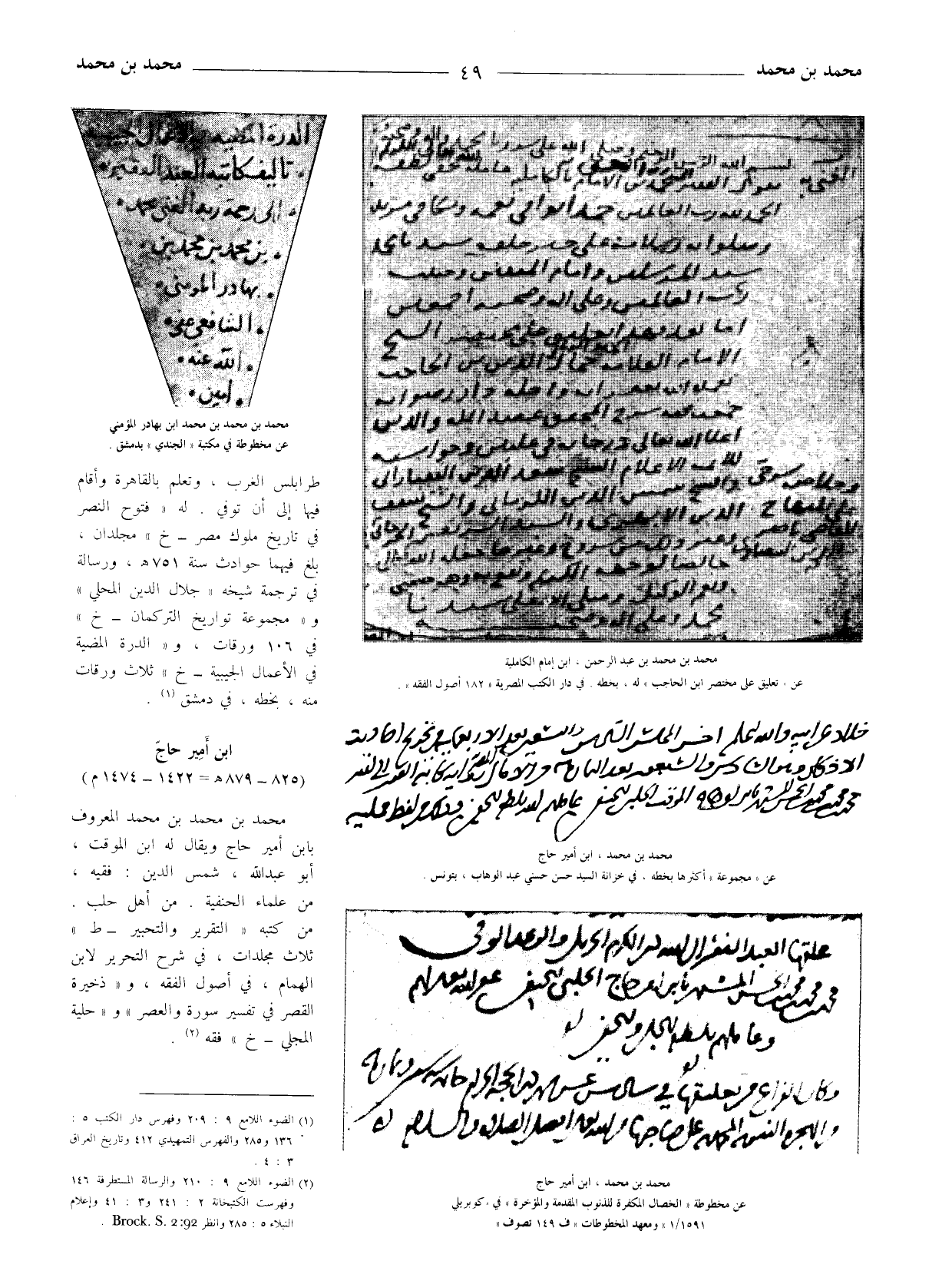 محمد بن محمد بن محمد المعروف بابن أمير حاج ويقال له ابن الموقت، أبو عبد الله، شمس الدين: فقيه، من علماء الحنفية. من أهل حلب. من كتبه (التقرير والتحبير - ط) ثلاث مجلدات، في شرح التحرير لابن الهمام، في أصول الفقه، و (ذخيرة القصر في تفسير سورة والعصر) و (حلية المجلي - خ) فقه (2) .