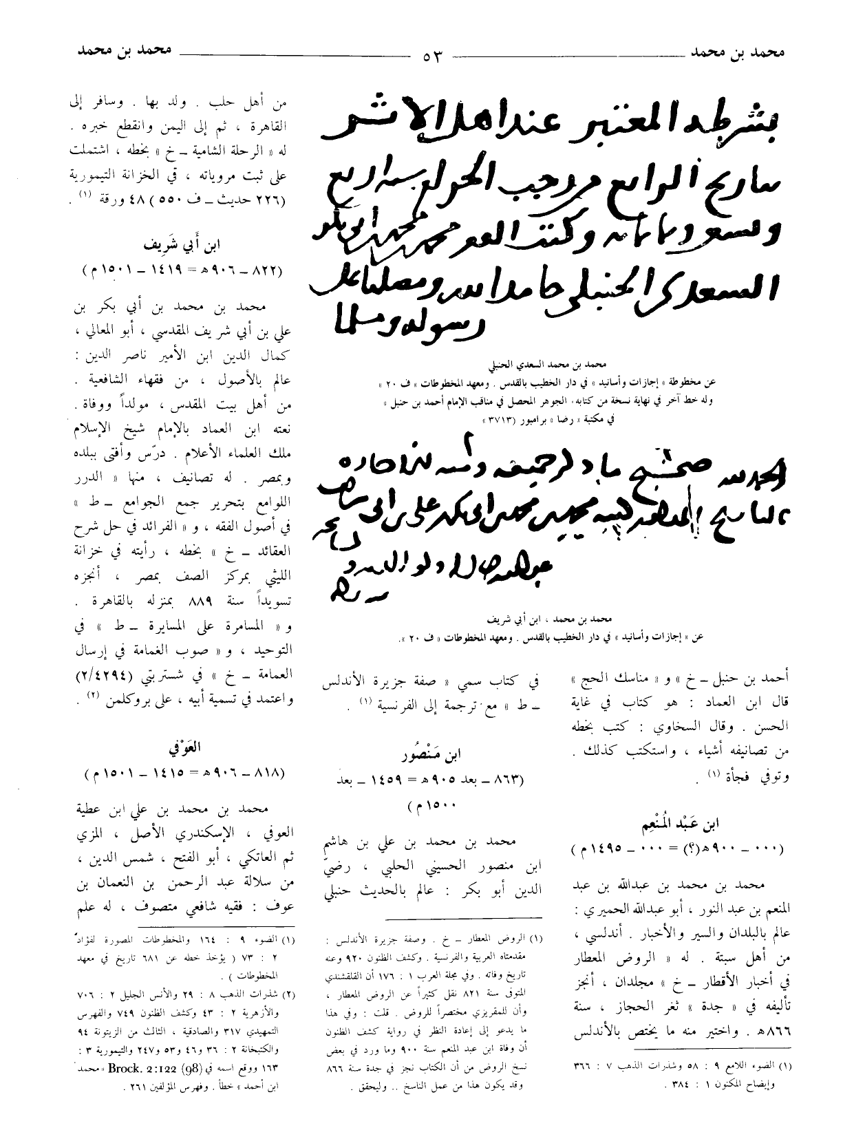 (1) الضوء 9: 164 والمخطوطات المصورة لفؤاد 2: 73 (يؤخذ خطه عن 681 تاريخ في معهد المخطوطات) .