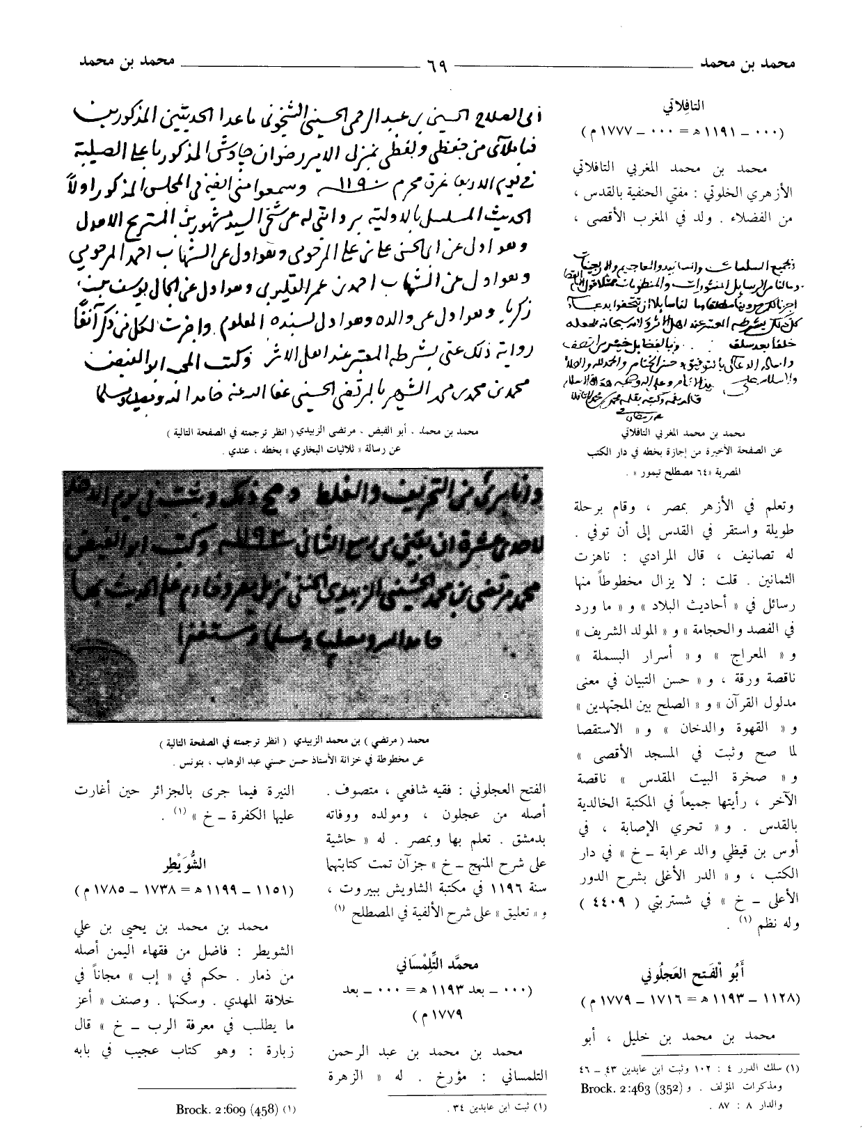 محمد بن محمد المغربي التافلاتي الأزهري الخلوتي: مفتي الحنفية بالقدس، من الفضلاء.