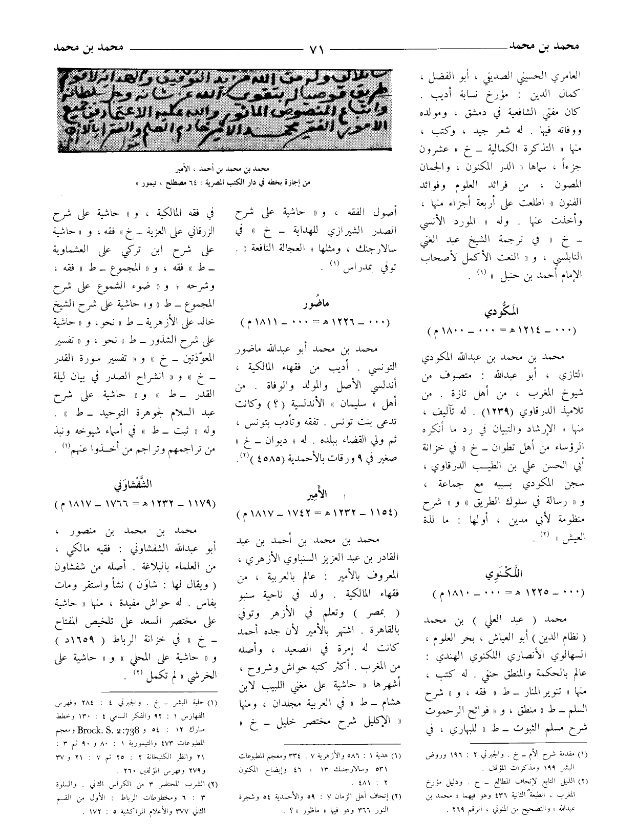 (2) إتحاف أهل الزمان 7: 59 والأحمدية 54 وشجرة النور 366 وهو فيها (ماظور) ؟.