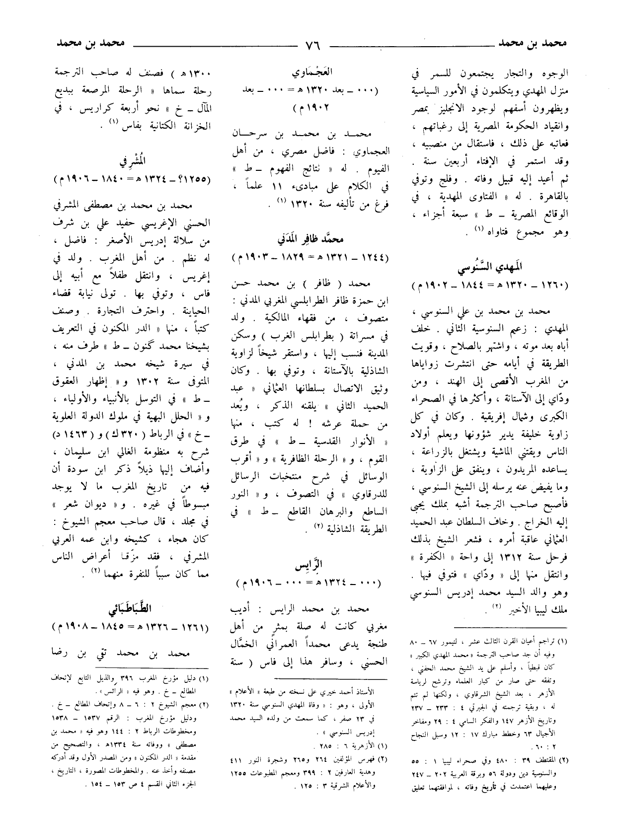 (2) المقتطف 39: 480 وفي صحراء ليبيا 1: 55 والسنوسية دين ودولة 56 وبرقة العربية 202 - 247 وعليهما اعتمدت في تاريخ وفاته، لموافقتهما تعليق