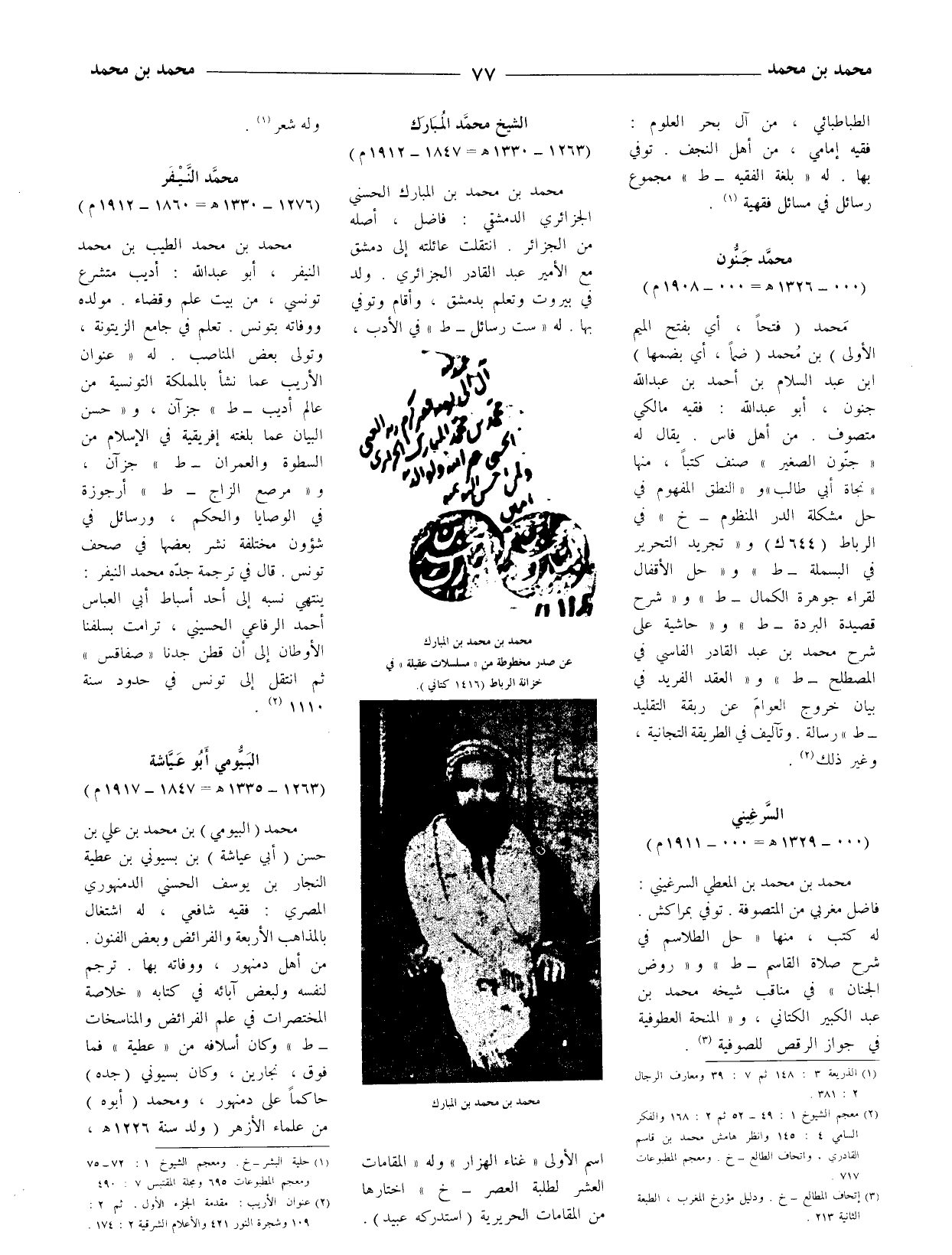 (2) معجم الشيوخ 1: 49 - 52 ثم 2: 168 والفكر السامي 4: 145 وانظر هامش محمد بن قاسم القادري، واتحاف الطالع - خ. ومعجم المطبوعات 717.