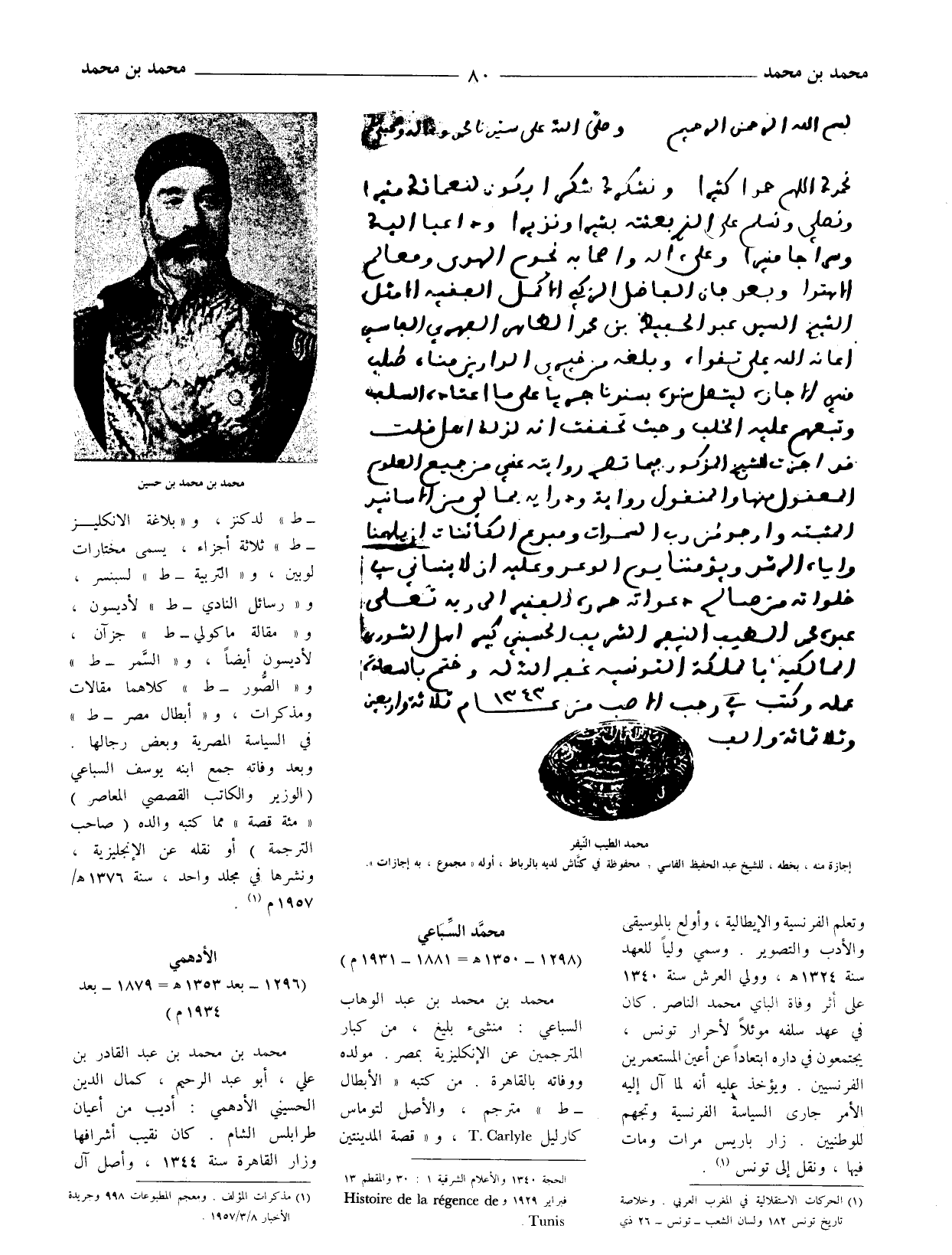 (1) الحركات الاستقلالية في المغرب العربيّ. وخلاصة تاريخ تونس 182 ولسان الشعب - تونس - 26 ذي