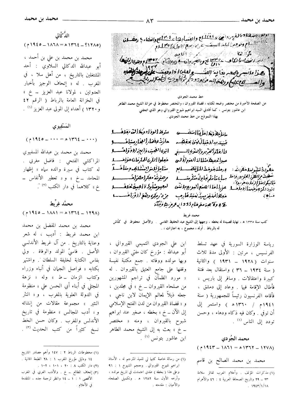 (1) من رسالة خاصة كتبها لي تلميذ المترجم له، الأستاذ إبراهيم شبوح القيرواني.