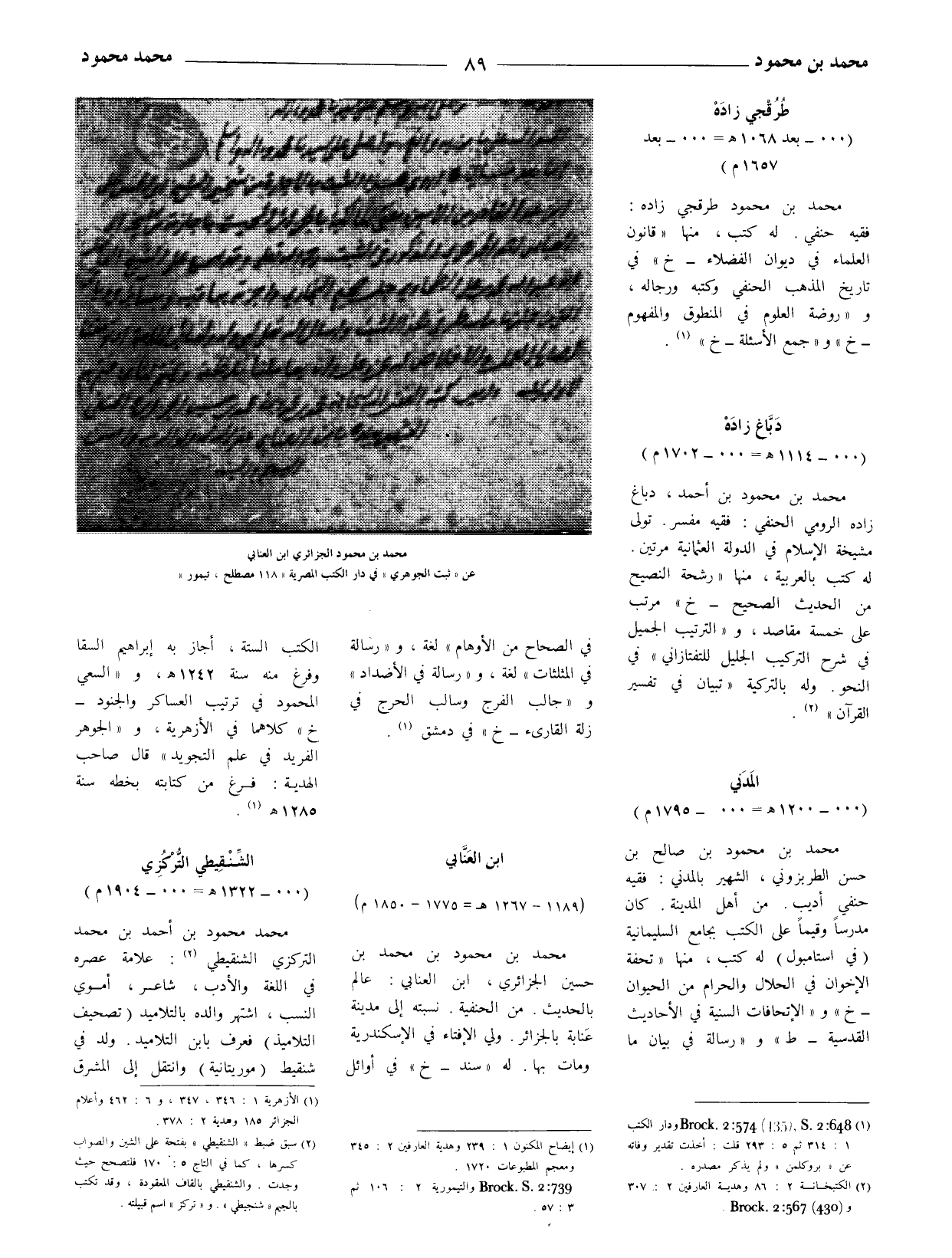 محمد بن محمود بن محمد بن حسين الجزائري، ابن العنابي: عالم بالحديث. من الحنفية.