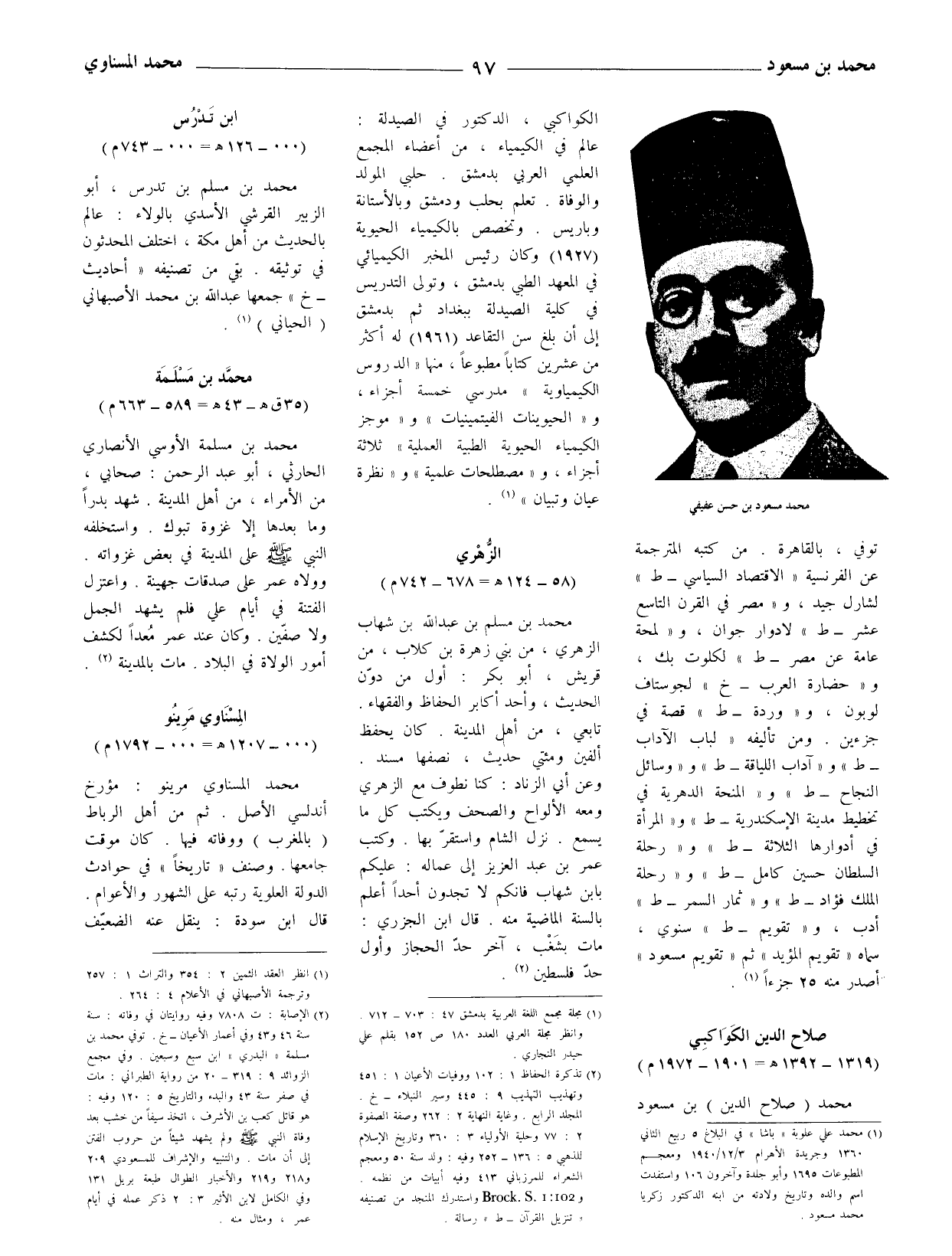 (1) محمد علي علوبة (باشا) في البلاغ 5: ربيع الثاني 1360 وجريدة الأهرام 3 / 12 / 1940 ومعجم المطبوعات 1695 وأبو جلدة وآخرون 106 واستفدت اسم والده وتاريخ ولادته من ابنه الدكتور زكريا محمد مسعود.