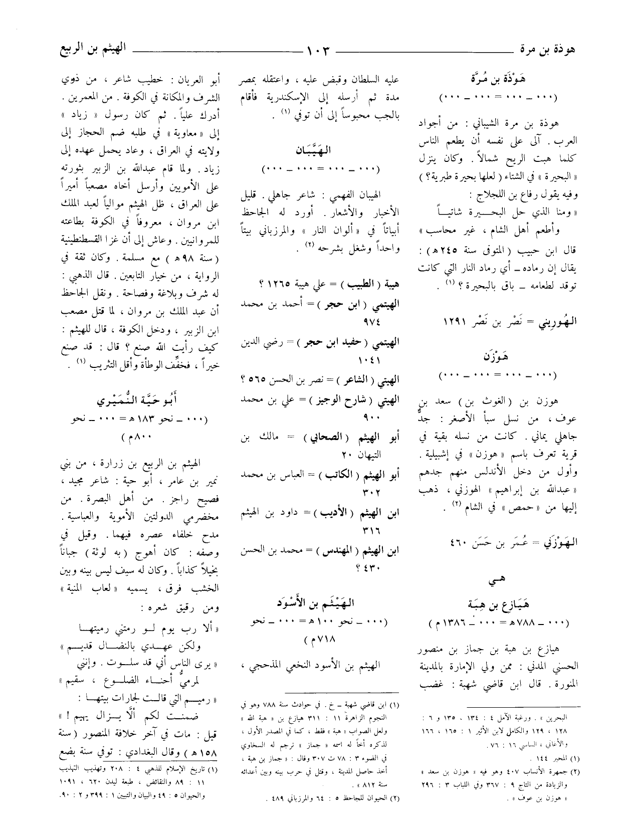 (1) تاريخ الإسلام للذهبي 4: 208 وتهذيب التهذيب 11: 89 والنقائض، طبعة ليدن 620، 1091 والحيوان 5: 49 والبيان والتبيين 1: 399 و 2: 90.