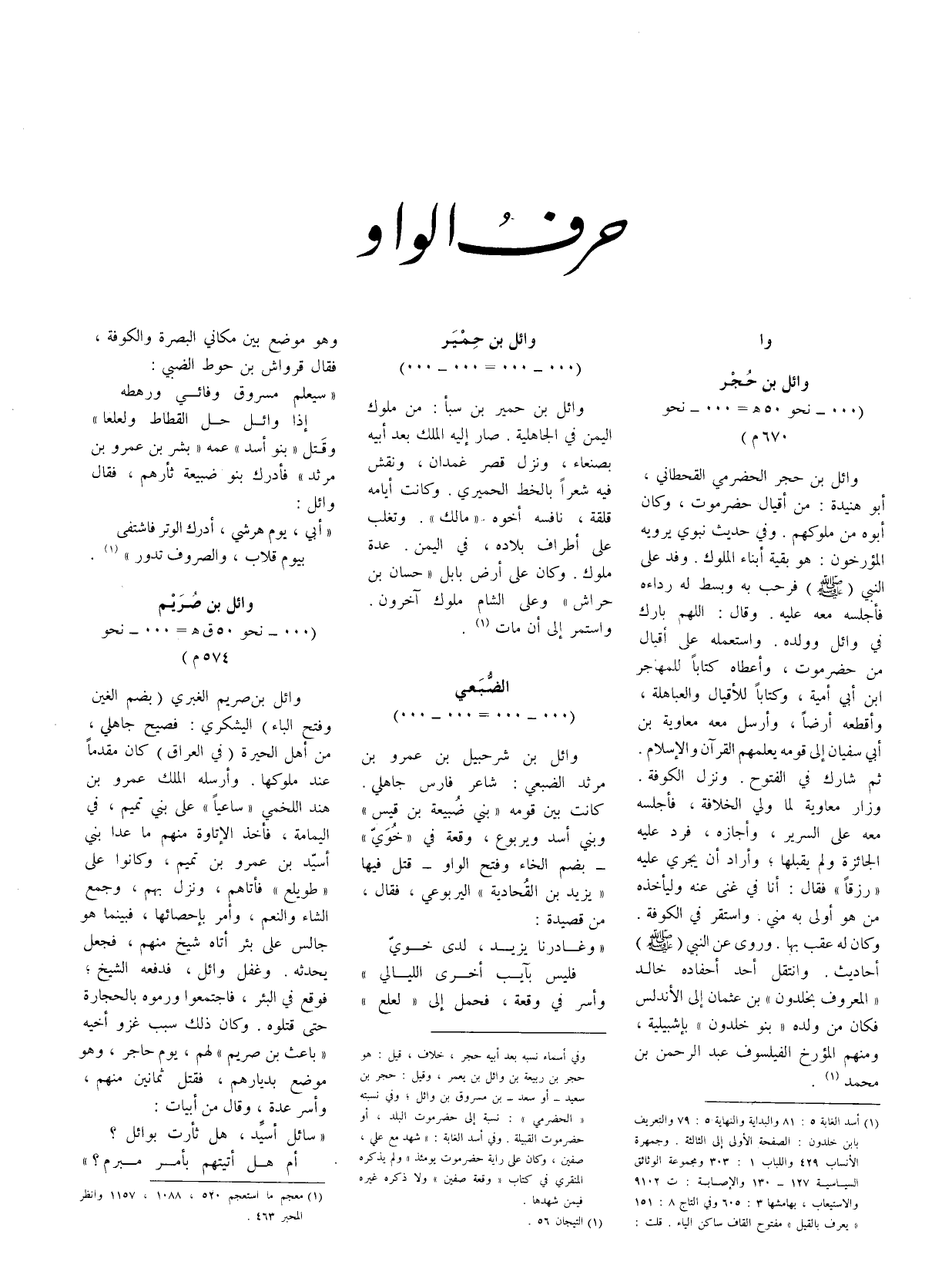(1) أسد الغابة 5: 81 والبداية والنهاية 5: 79 والتعريف بابن خلدون: الصفحة الأولى إلى الثالثة. وجمهرة الأنساب 429 واللباب 1: 303 ومجموعة الوثائق السياسية 127 - 130 والإصابة: ت 9102 والاستيعاب، بهامشها 3: 605 وفي التاج 8: 151 " يعرف بالقيل " مفتوح القاف ساكن الياء. قلت: