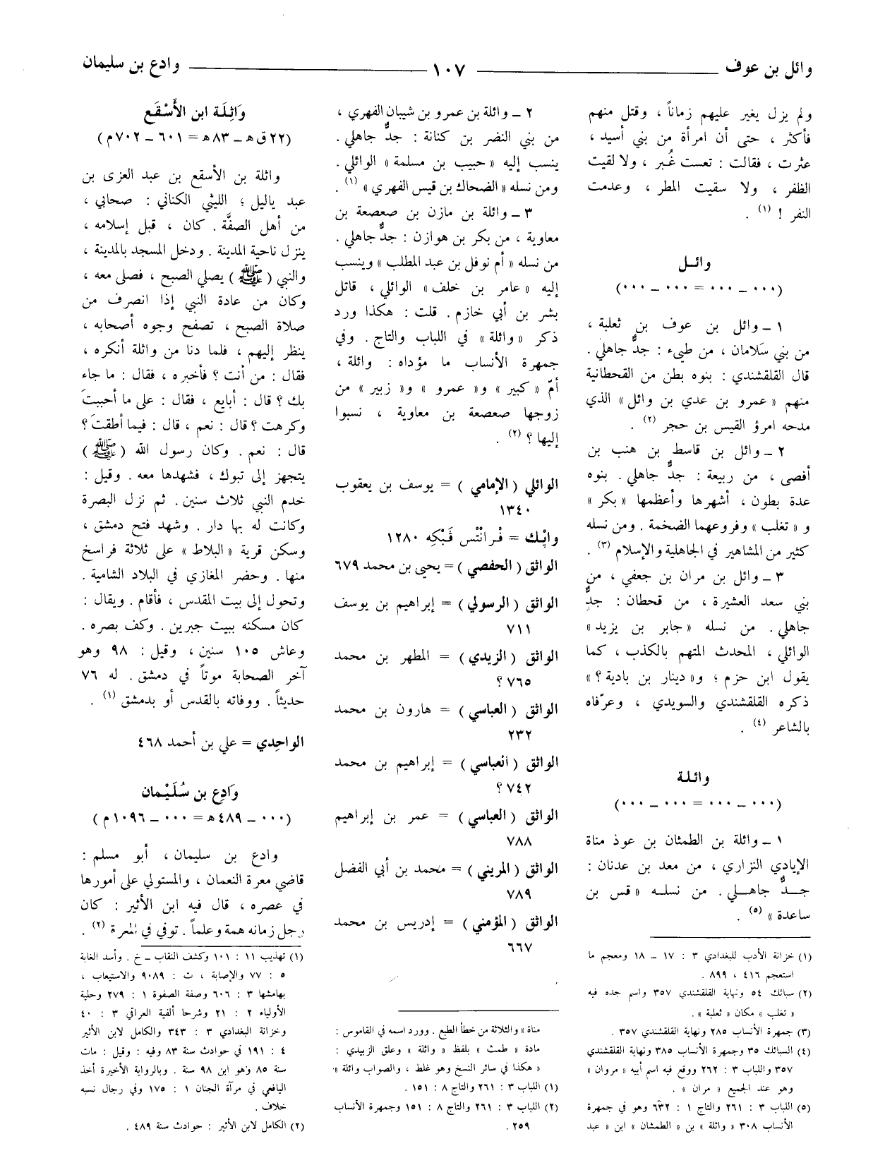 مناة " والثلاثة من خطأ الطبع. وورد اسمه في القاموس: مادة " طمث " بلفظ " واثلة " وعلق الزبيدي: " هكذا في سائر النسخ وهو غلط، والصواب وائلة ".