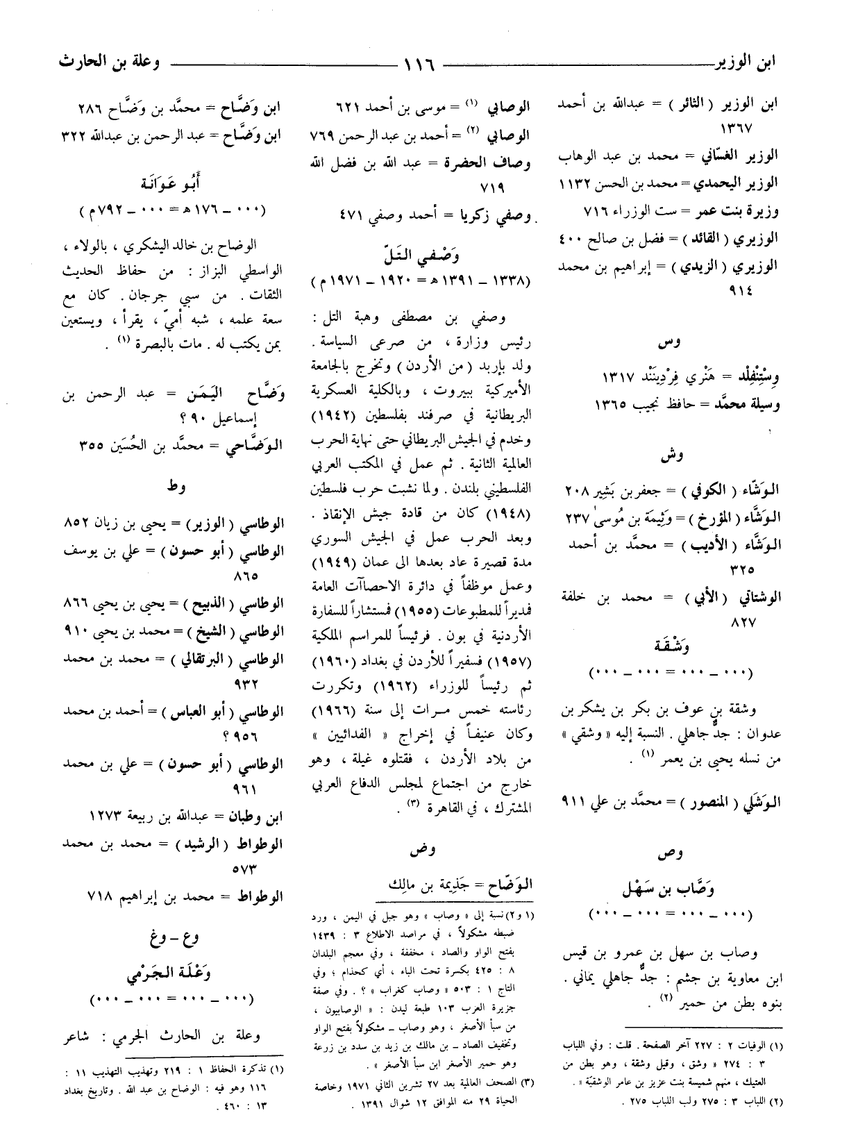 وصفي بن مصطفى وهبة التل: رئيس وزارة، من صرعى السياسة. ولد بإربد (من الأردن) وتخرج بالجامعة الأميركية ببيروت، وبالكلية العسكرية البريطانية في صرفند بفلسطين (1942) وخدم في الجيش البريطاني حتى نهاية الحرب العالمية الثانية. ثم عمل في المكتب العربيّ الفلسطيني بلندن. ولما نشبت حرب فلسطين (1948) كان من قادة جيش الإنقاذ. وبعد الحرب عمل في الجيش السوري مدة قصيرة عاد بعدها الى عمان (1949) وعمل موظفا في دائرة الاحصاآت العامة فمديرا للمطبوعات (1955) فمستشارا للسفارة الأردنية في بون.