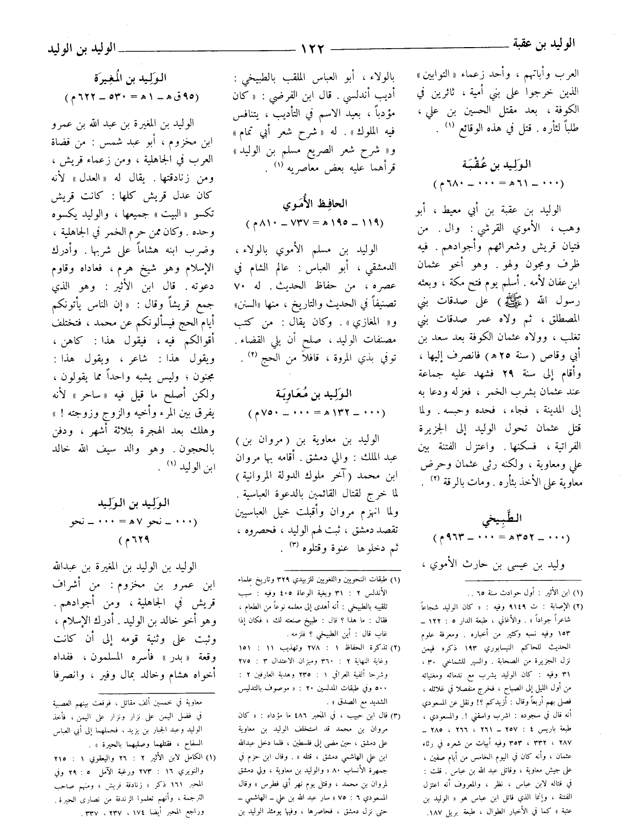 (3) قال ابن حبيب، في المحبر 486 ما مؤداه: " كان مروان بن محمد قد استخلف الوليد بن معاوية على دمشق، حين مضى إلى فلسطين، فلما دخل عبد الله بن علي الهاشمي دمشق، قتله ".