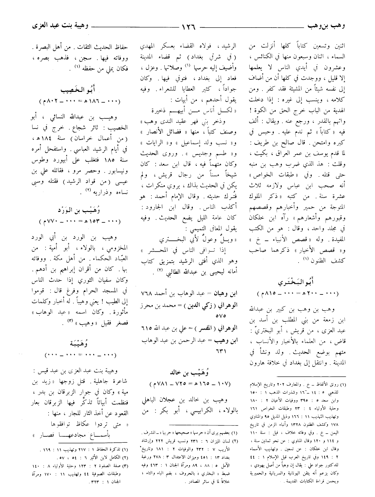 (2) لسان الميزان 6: 231 ونسب قريش 222 وإرشاد الأريب 7: 232 والوفيات 2: 181 وتاريخ بغداد 13: 451 وميزان الاعتدال 3: 278 ورغبة الآمل 5: 88، 89 ومرآة الجنان 1: 463 وفيه ضبط " البختري " بالحروف، بضم الباء والتاء، خلافا لما في سائر المصادر.
