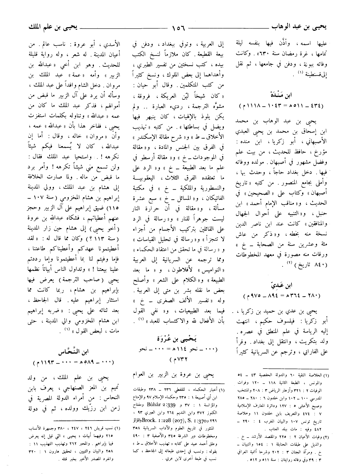 يحيى بن عدي بن حميد بن زكريا، أبو زكريا: فيلسوف حكيم، انتهت اليه الرياسه في علم المنطق في عصره. ولد بتكريت، وانتقل إلى بغداد. وقرأ على الفارابيّ، وترجم عن السريانية كثيرا