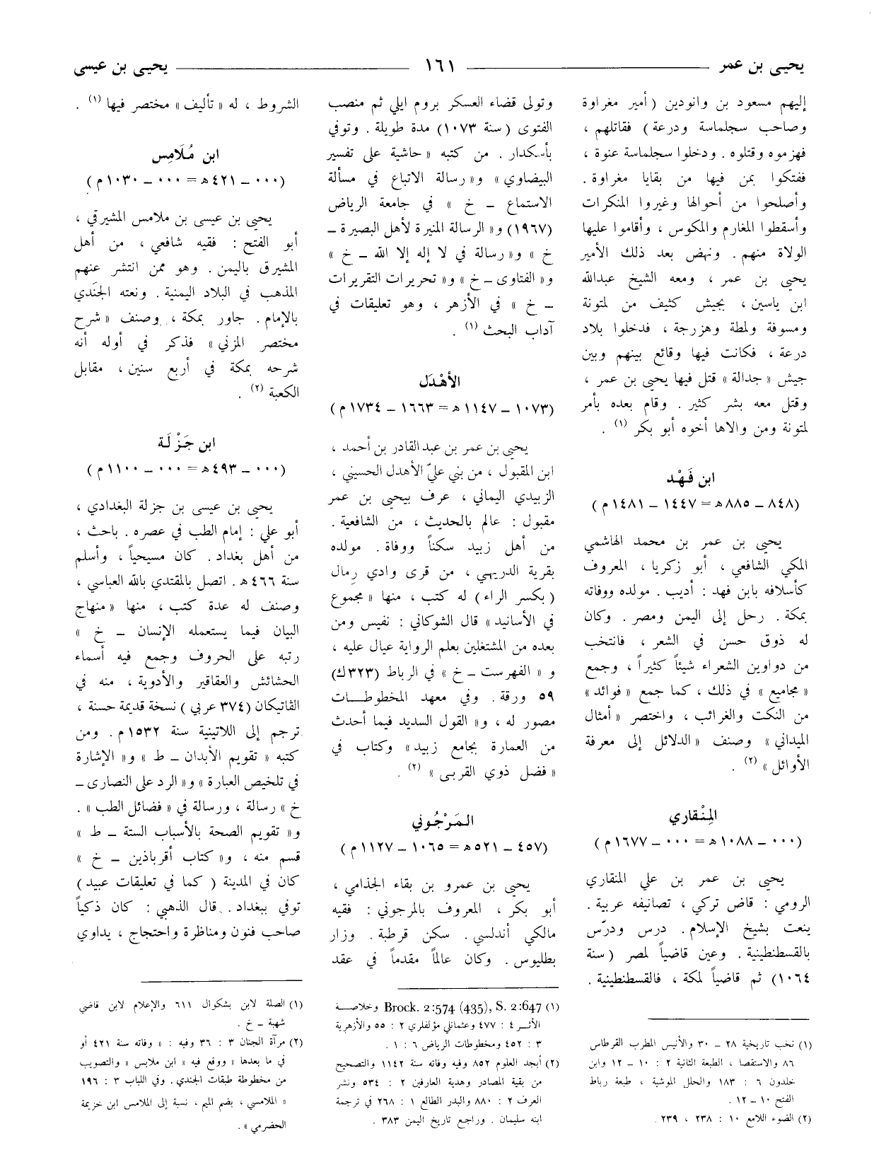 (2) مرآة الجنان 3: 36 وفيه: " وفاته سنة 421 أو في ما بعدها " ووقع فيه " ابن ملابس " والتصويب من مخطوطة طبقات الجندي. وفي اللباب 3: 196 " الملامسي، بضم الميم، نسبة إلى الملامس ابن خزيمة الحضرميّ ".