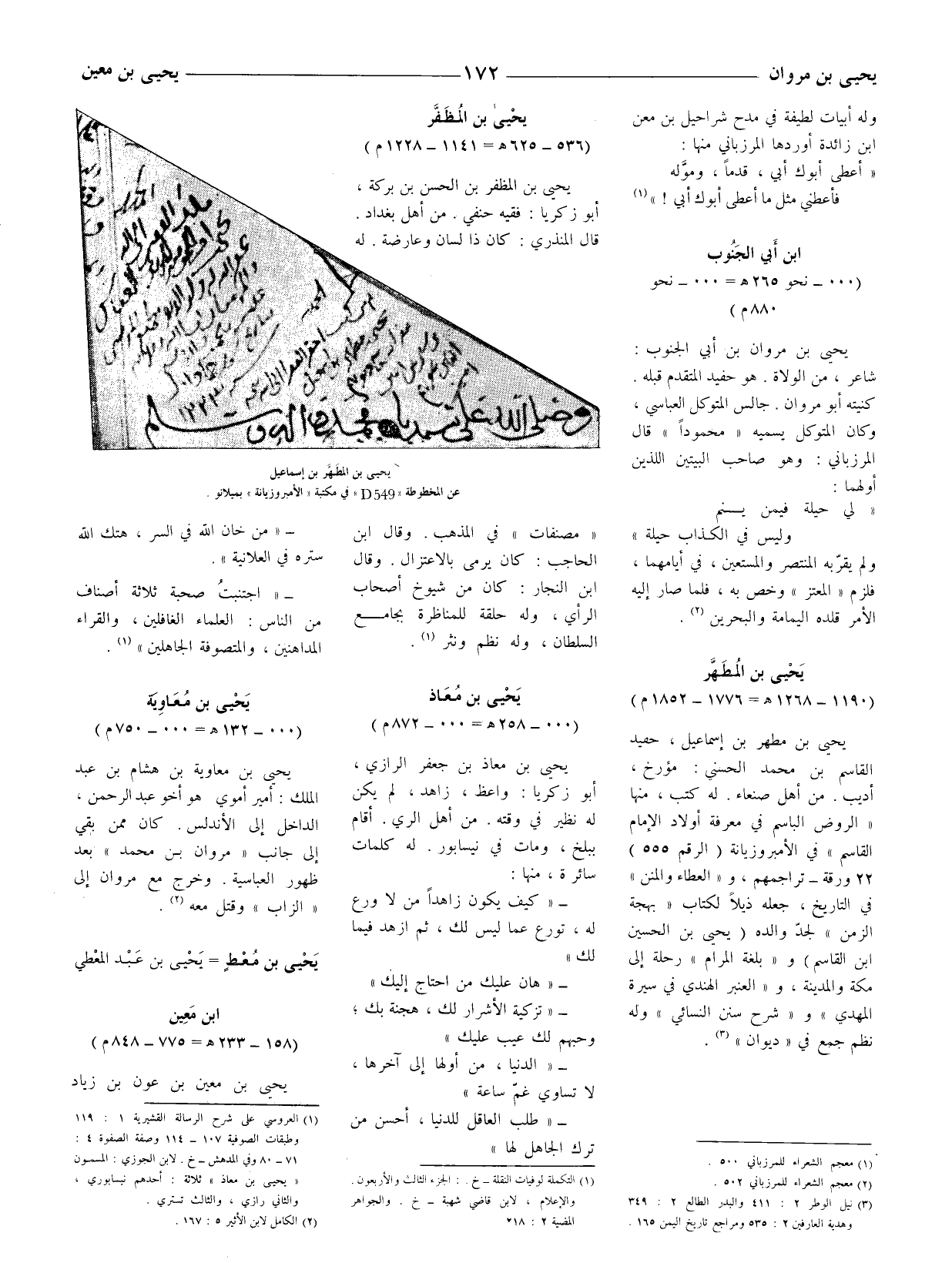 يحيى بن المظفر بن الحسن بن بركة، أبو زكريا: فقيه حنفي. من أهل بغداد. قال المنذري: كان ذا لسان وعارضة. له " مصنفات " في المذهب. وقال ابن الحاجب: كان يرمي بالاعتزال.