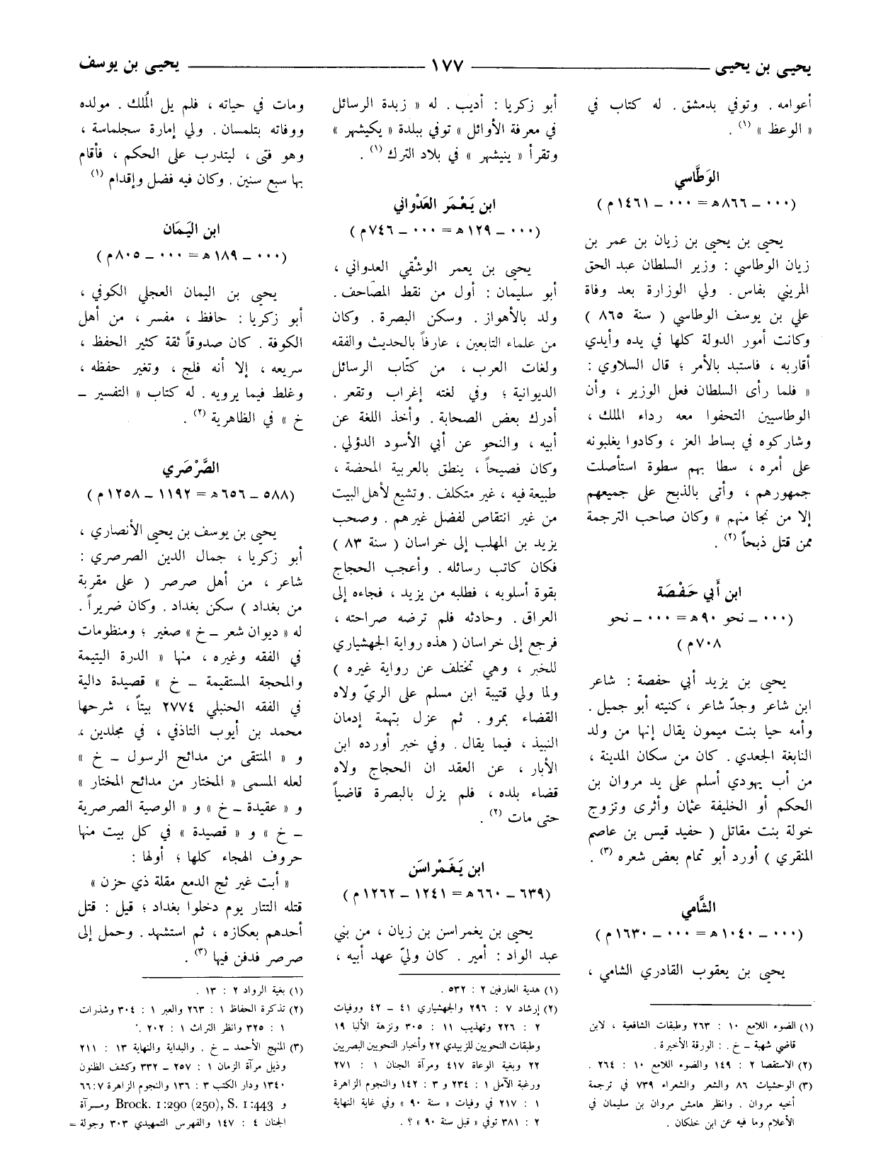 يحيى بن يحيى بن زيان بن عمر بن زيان الوطاسي: وزير السلطان عبد الحق المريني بفاس.