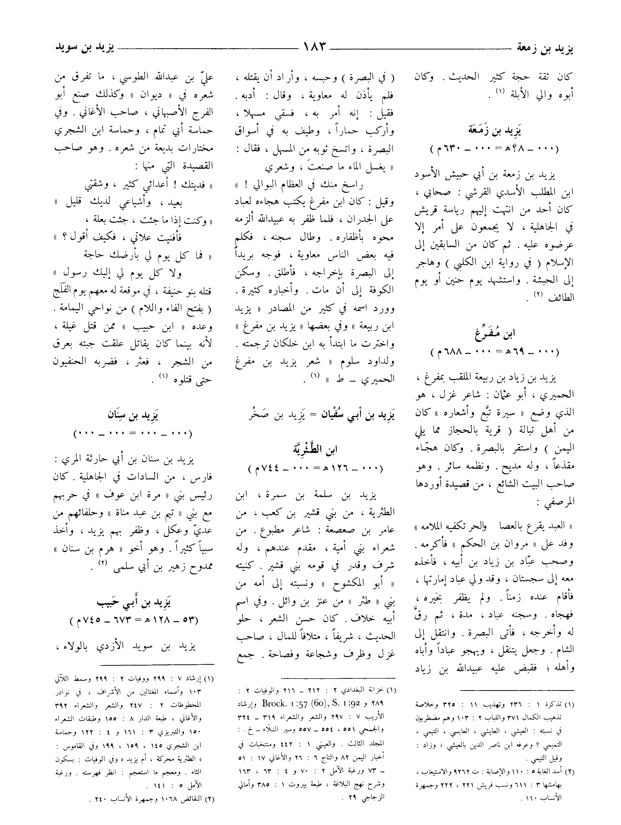 (1) إرشاد 7: 299 ووفيات 2: 299 وسمط اللآلي 103 وأسماء المغتالين من الأشراف، في نوادر المخطوطات 2: 247 والشعر والشعراء 392 والأغاني، طبعة الدار 8: 155 وطبقات الشعراء 150 والتبريزي 3: 161 و 4: 122 وحماسة ابن الشجري 145، 159، 199 وفي القاموس: " الطثرية محركة، أم يزيد " وفي الوفيات: بسكون الثاء. ومعجم ما استعجم: انظر فهرسته. ورغبة الآمل 5: 141.