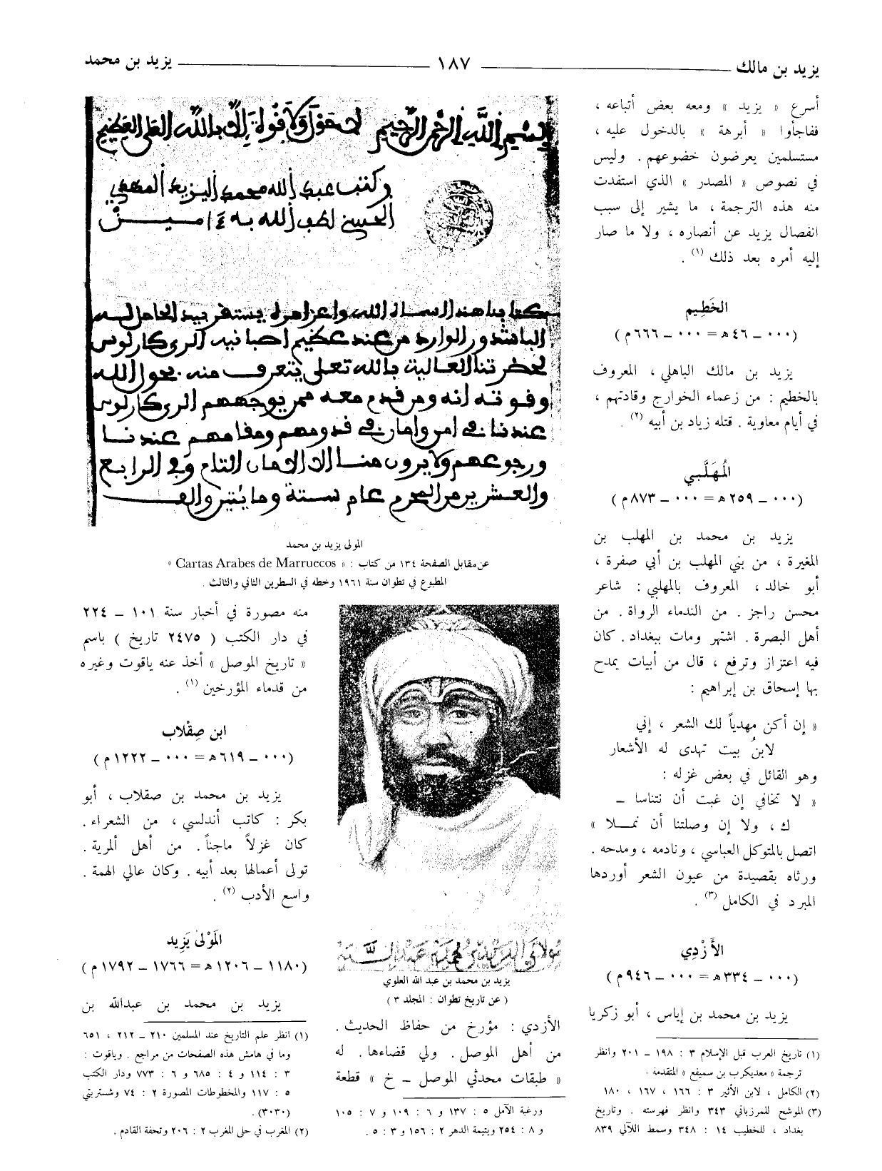 منه مصورة في أخبار سنة 101 - 224 في دار الكتب (2475 تاريخ) باسم " تاريخ الموصل " أخذ عنه ياقوت وغيره من قدماء المؤرخين (1) .