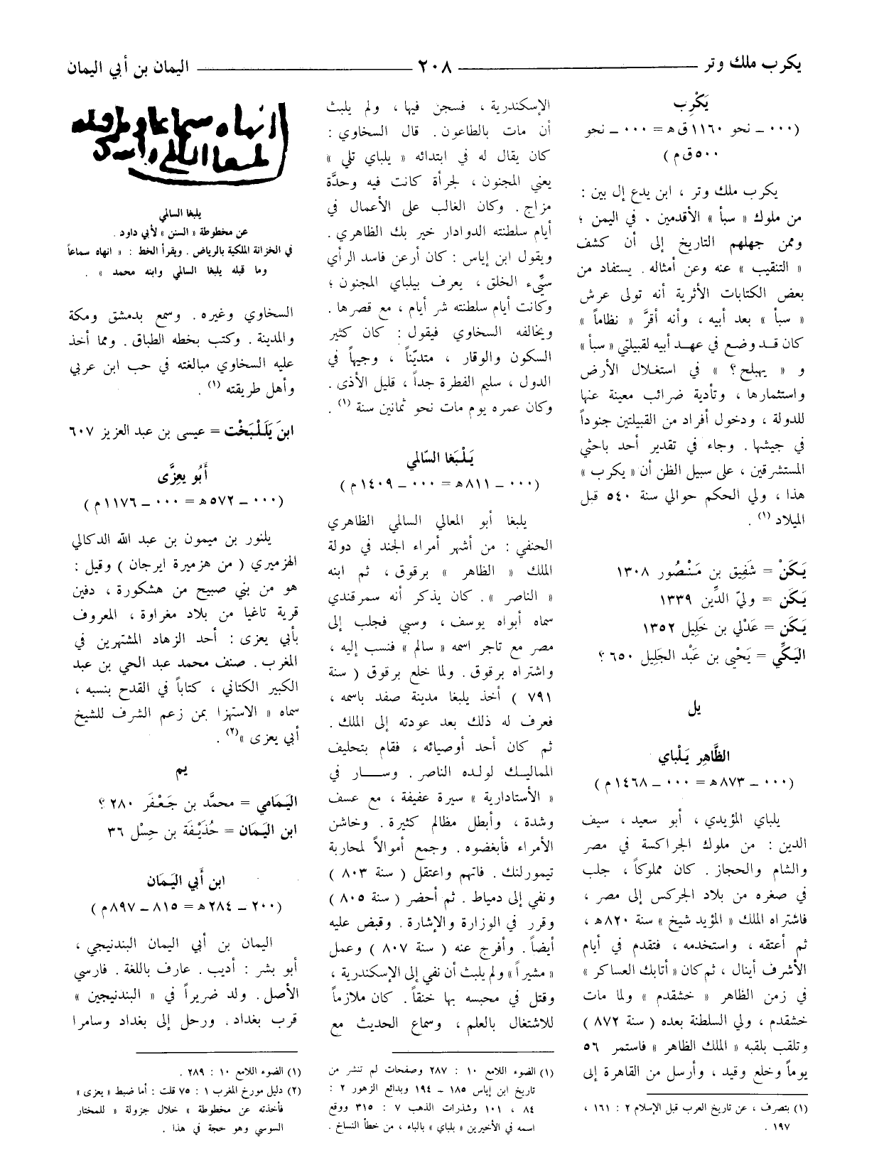 (1) الضوء اللامع 10: 287 وصفحات لم تنشر من تاريخ ابن إياس 185 - 194 وبدائع الزهور 2: 84، 101 وشذرات الذهب 7: 315 ووقع اسمه في الأخيرين " بلباي " بالباء، من خطأ النساخ.