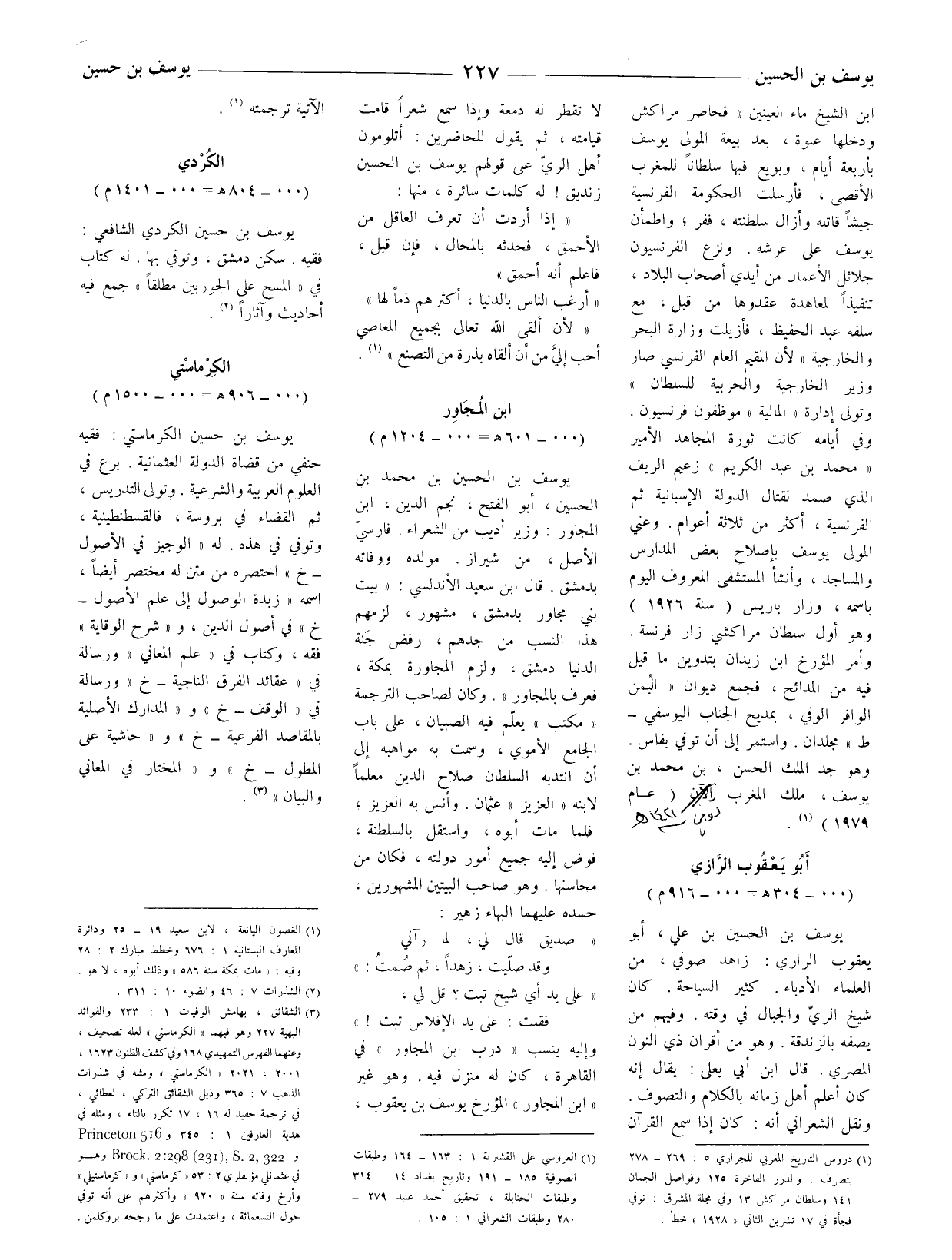 (1) دروس التاريخ المغربي للجراري 5: 269 - 278 بتصرف. والدرر الفاخرة 125 وفواصل الجمان 141 وسلطان مراكش 13 وفي مجلة المشرق: توفي فجأة في 17 تشرين الثاني " 1928 " خطأ.