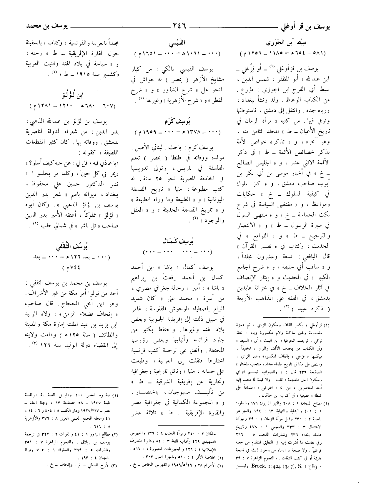 (1) صفوة العصر 100 ودليل الطبقة الراقية طبعة 1947 - 48 الصفحة 13، ومجلة العالم - مصر - 7 / 3 / 1927 ودار الكتب 5: 404 و 6: 14، 41 ومجلة المجمع العلمي العربيّ 8: 376 والأزهرية 5: 616.