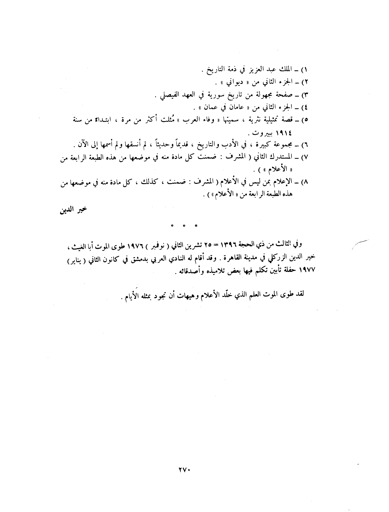8) - الإعلام بمن ليس في الأعلام (المشرف: ضمنت، كذلك، كل مادة منه في موضعها من هذه الطبعة الرابعة من " الأعلام ") .