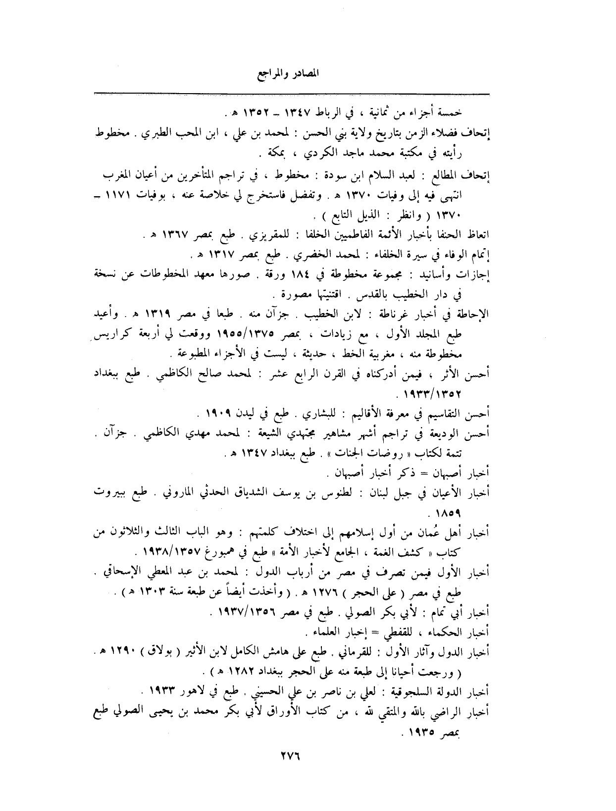 تتمة لكتاب " روضات الجنات ". طبع ببغداد 1347 هـ
