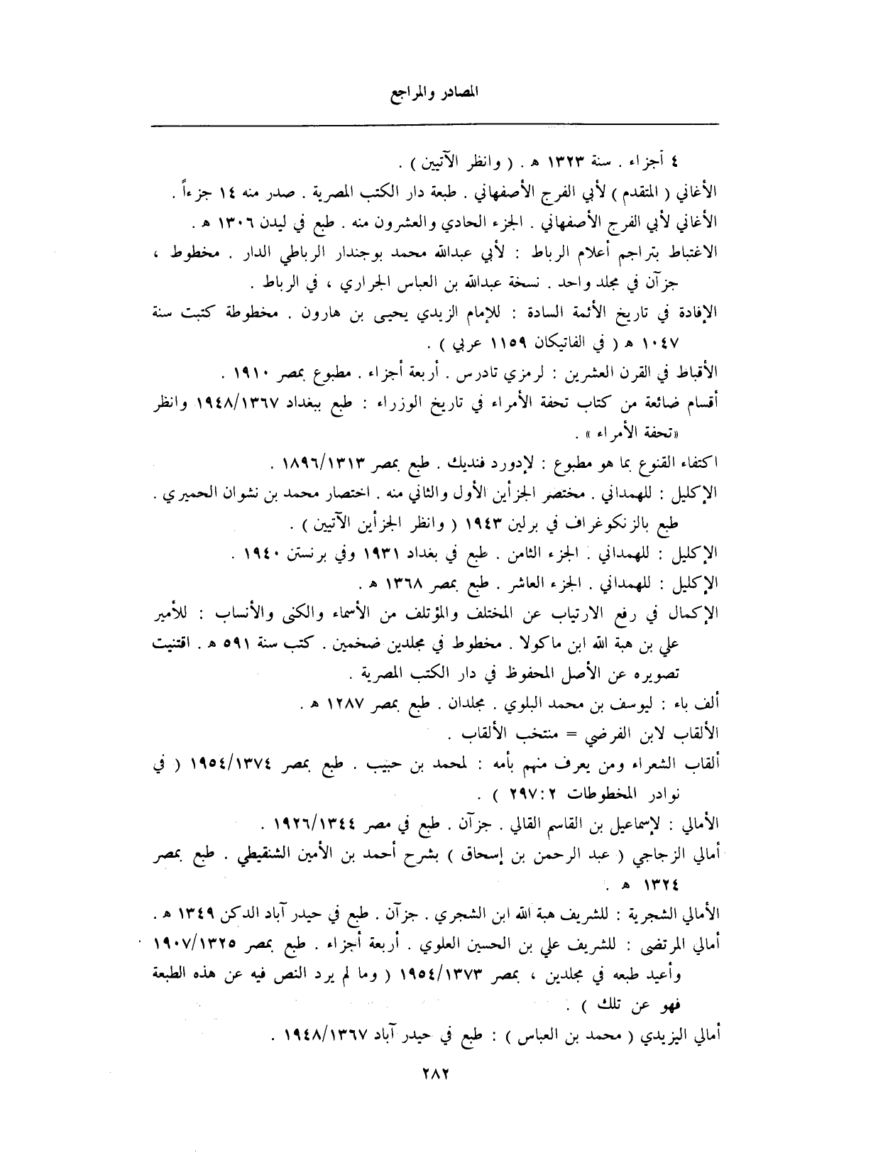 أقسام ضائعة من كتاب تحفة الأمراء في تاريخ الوزراء: طبع ببغداد 1367 / 1948 وانظر " تحفة الأمراء ".