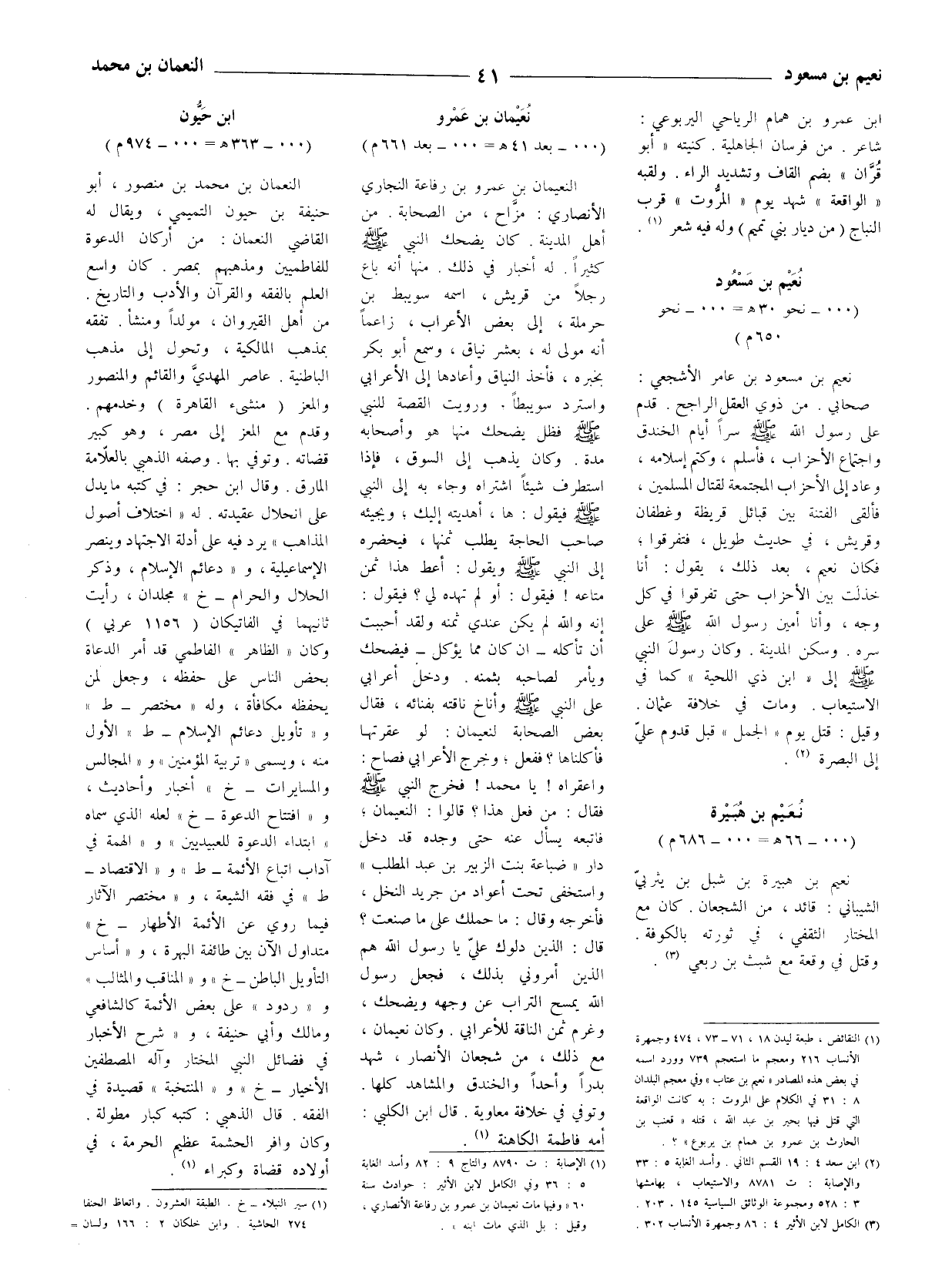 (1) الإصابة: ت 8790 والتاج 9: 82 وأسد الغابة 5: 36 وفي الكامل لابن الأثير: حوادث سنة 60 " وفيها مات نعيمان بن عمرو بن رفاعة الأنصاري، وقيل: بل الّذي مات ابنه ".