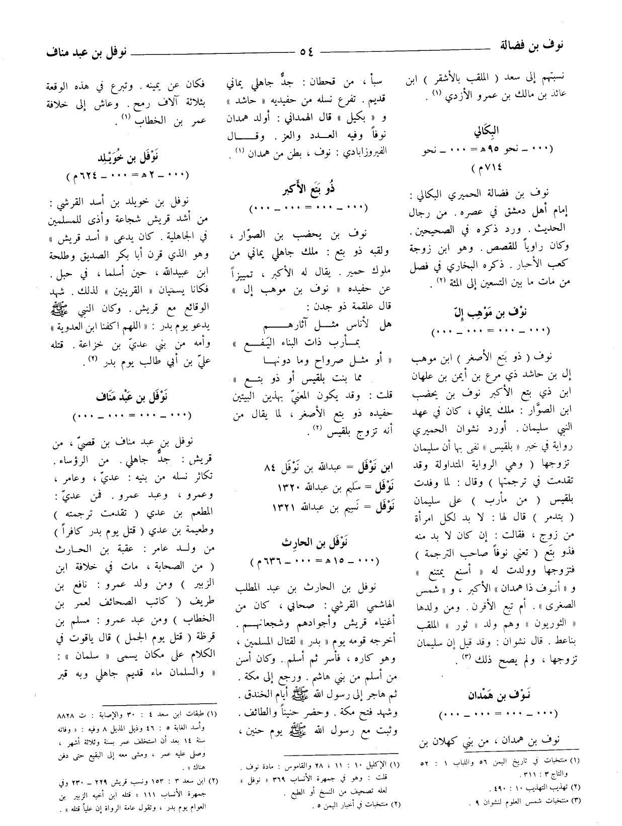 (1) الإكليل 10: 11، 28 والقاموس: مادة نوف. قلت: وهو في جمهرة الأنساب 369 " نوفل " لعله تصحيف من النسخ أو الطبع.