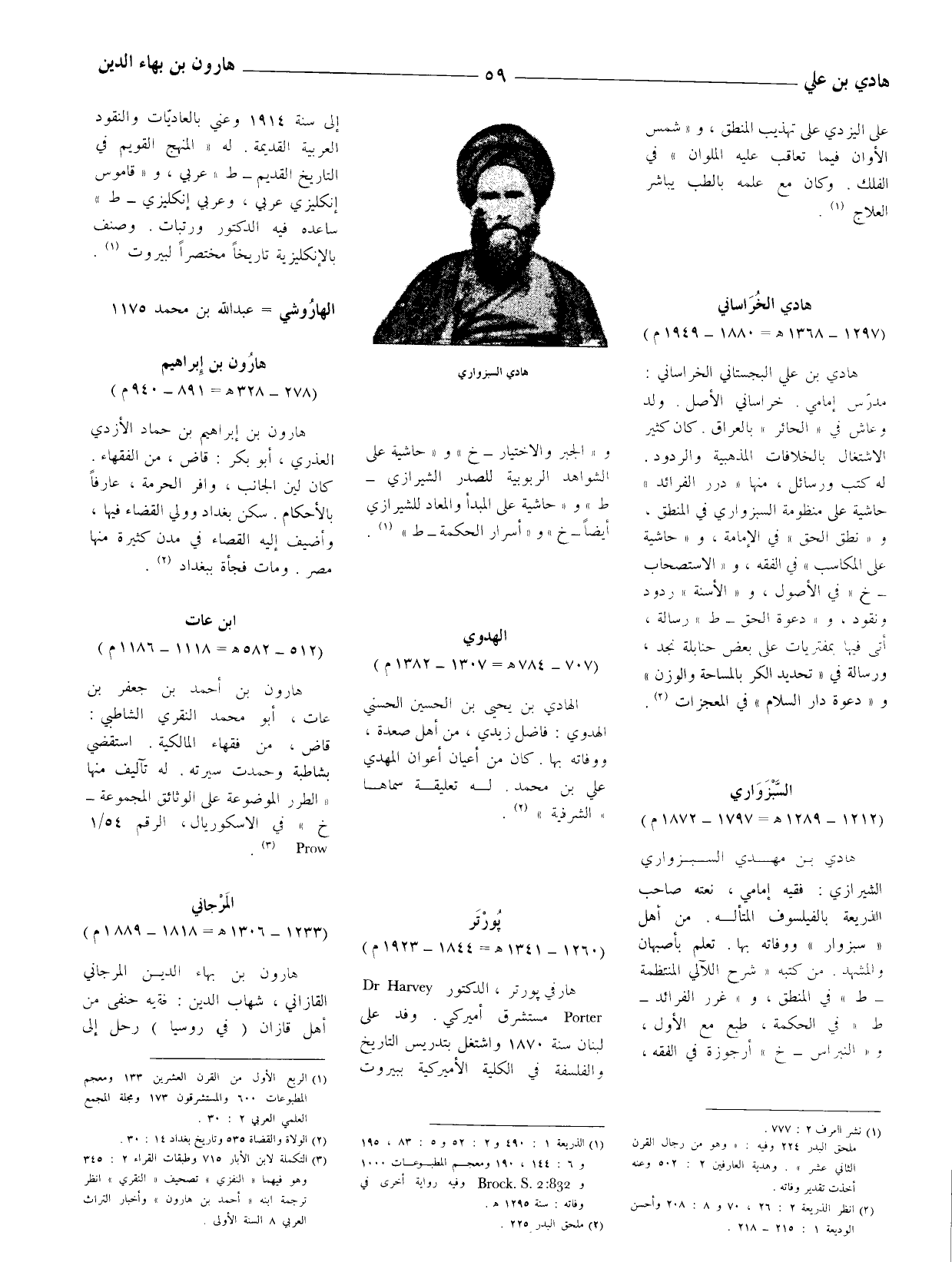 هادي بن مهدي السبزواري الشيرازي: فقيه إمامي، نعته صاحب الذريعة بالفيلسوف المتأله.