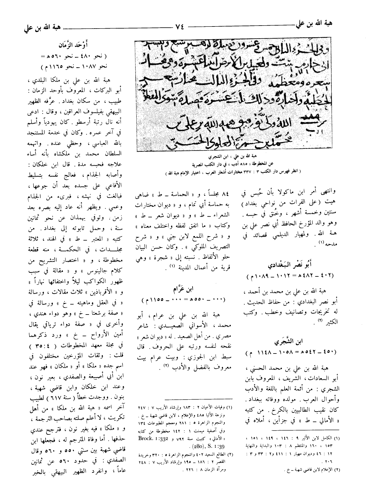 (1) الكامل لابن الأثير 9: 146، 149، 151، 153، 160 والمنتظم 8: 103 والبداية والنهاية 12: 46 وديوان مهيار 1: 411 و 2: 33 و 3: 206.