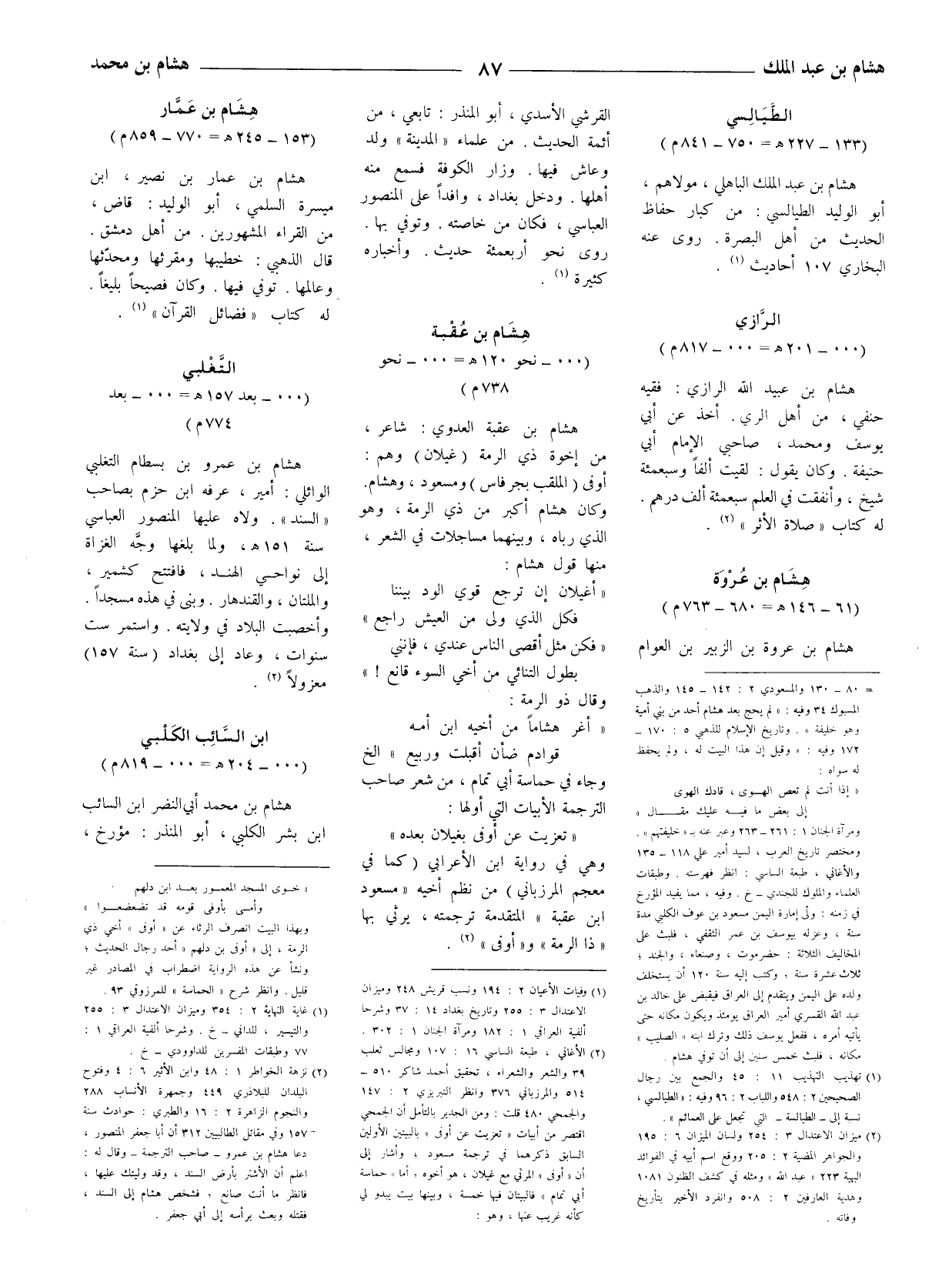 هشام بن عبيد الله الرازيّ: فقيه حنفي، من أهل الري. أخذ عن أبي يوسف ومحمد، صاحبي الإمام أبي حنيفة. وكان يقول: لقيت الفاً وسبعمئة شيخ، وأنفقت في العلم سبعمئة ألف درهم.